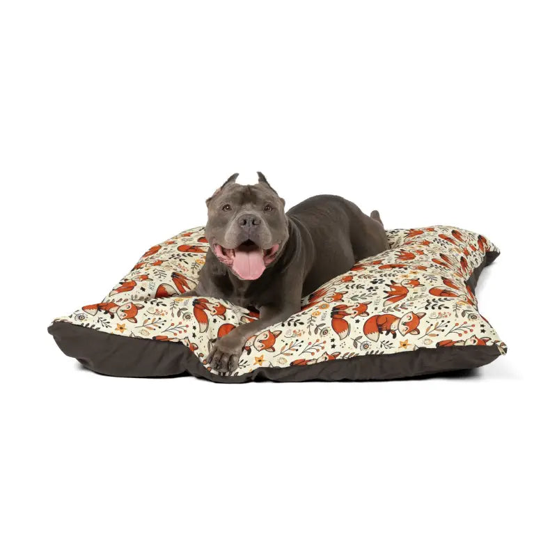 Imagine your pet sinking paws-first into a luxuriously soft fleece exterior adorned with an enchanting red fox print that adds a playful touch to any living space. But it's not just about looks—the sophisticated dark brown zippered back and the plump pillow insert create a haven where security meets style, reassuring both you and your four-legged friend's unwavering watchkeeping duties.