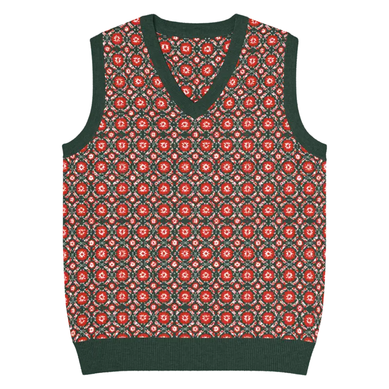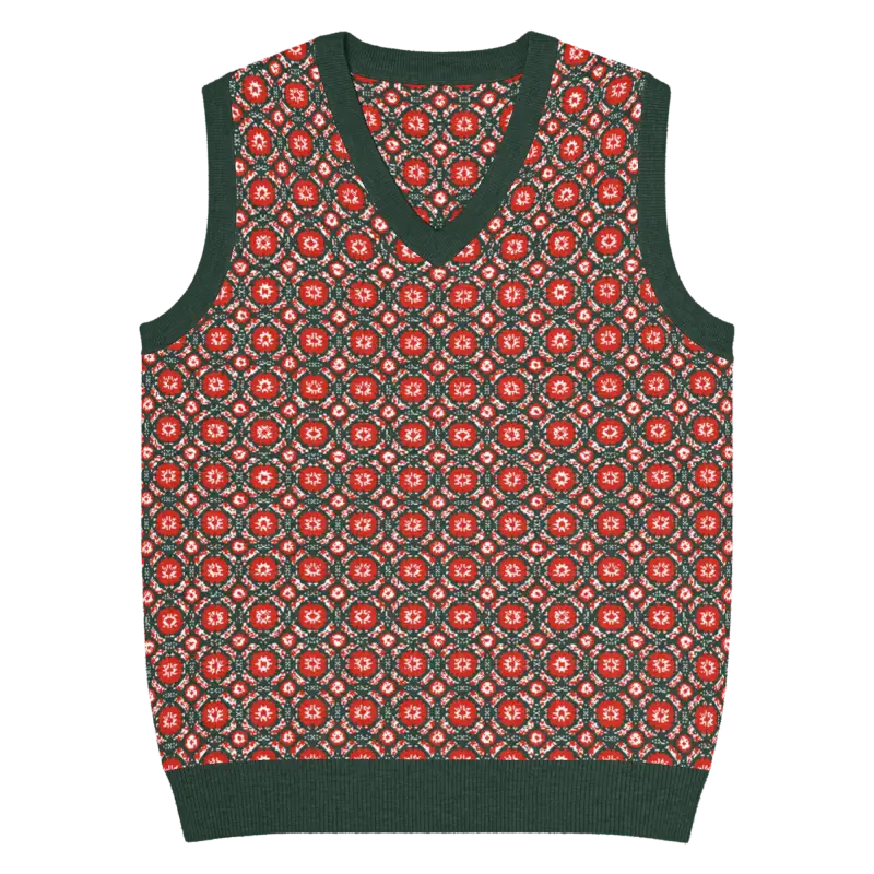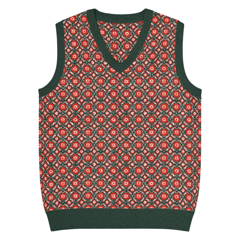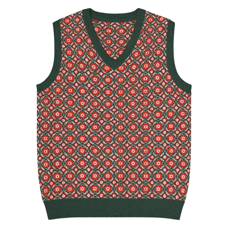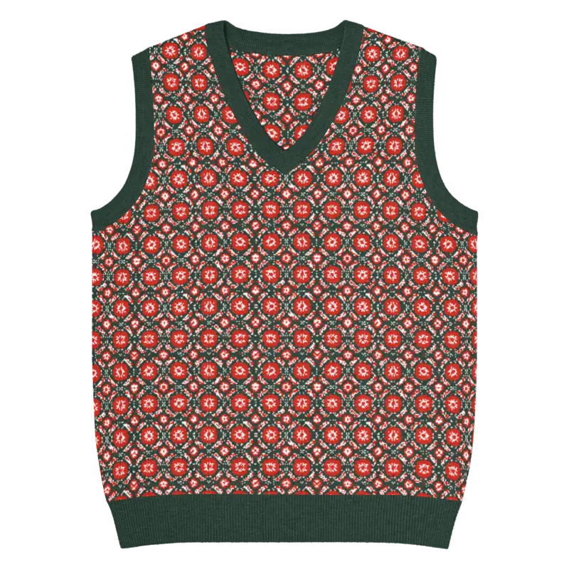 Get ready to turn heads with this show-stopping pattern knit vest that brings vintage vibes and modern swagger together in one irresistible package! This red green diamond pattern knit vest is your new secret weapon for serving up serious style while staying cozy and comfortable all season long.