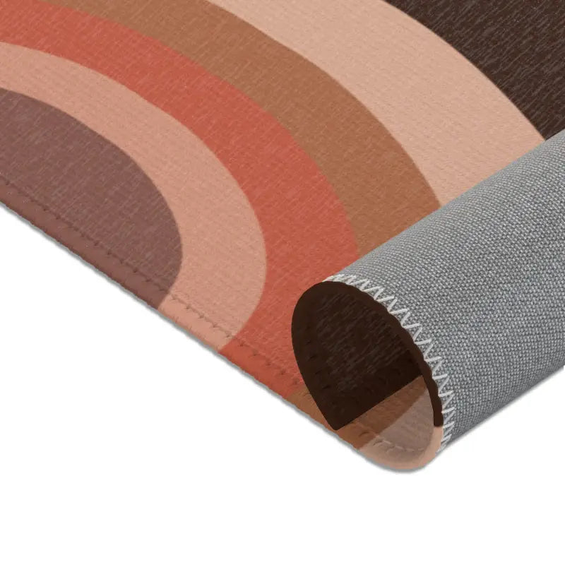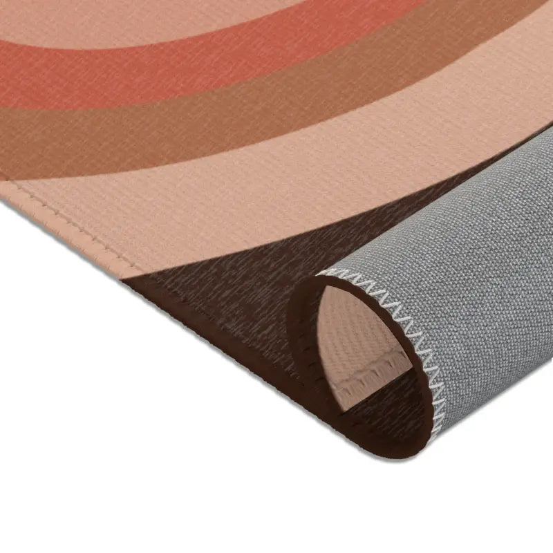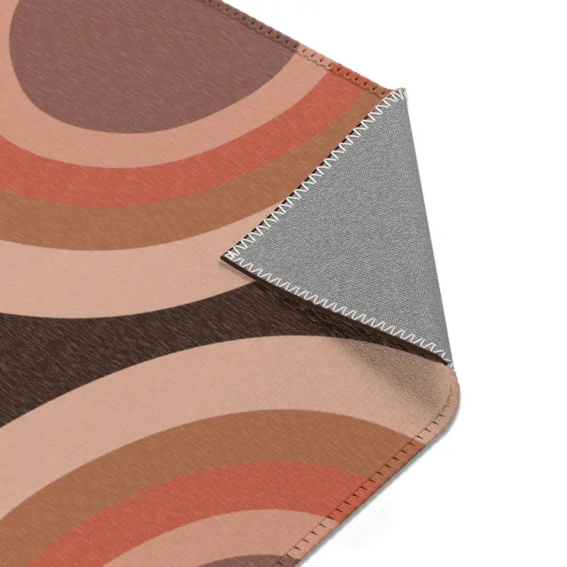Imagine rich rust, mustard gold, and deep teal forming concentric waves under your feet This retro circular area delights with its bold medallion motif and textured loops that catch the light just right Picture your coffee table perched at its center, accent pillows scattered around, and that instant feeling of homecoming