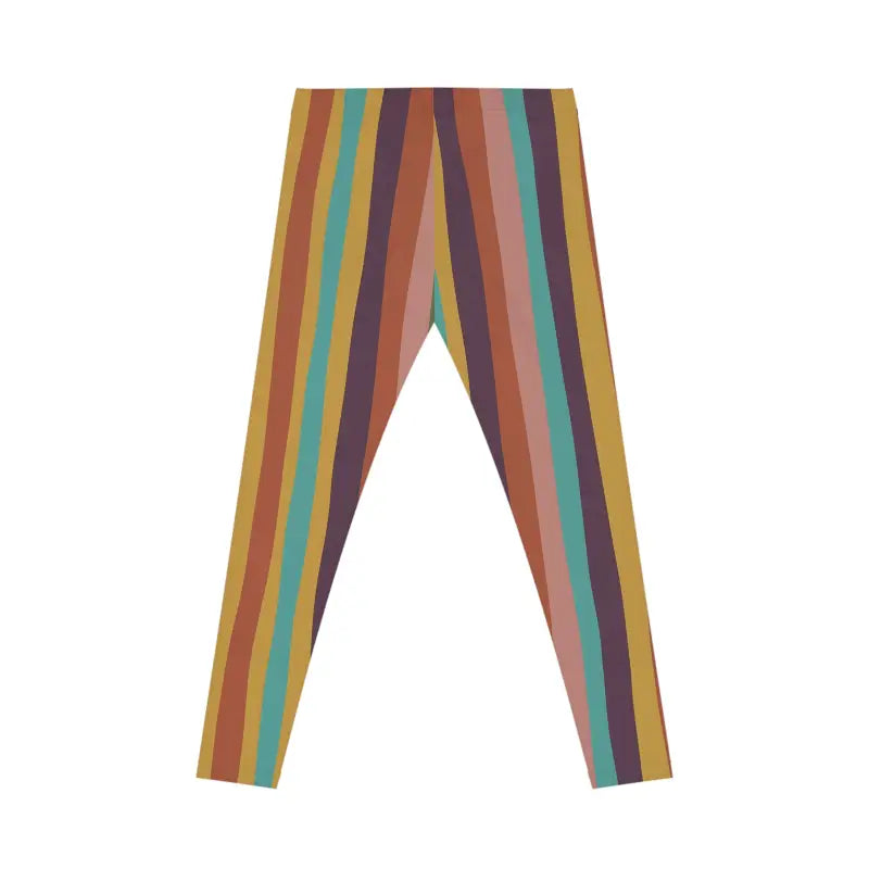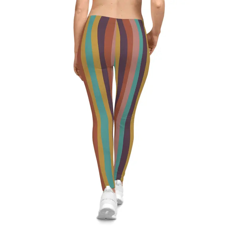 Get ready to groove through your day in these retro rainbow stripe leggings that bring serious vintage vibes to everything you do. The vertical bands in rust, mustard, teal, mauve, and deep plum create an eye-catching color story that flatters your silhouette while keeping things fun and fresh.