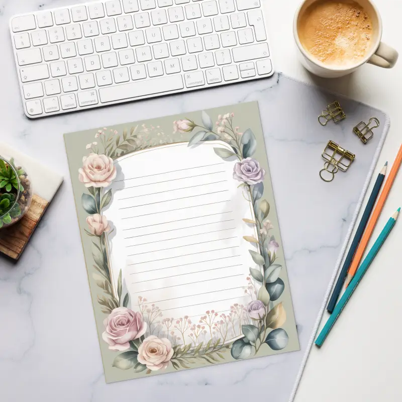 Capture every brilliant thought with this stunning rose floral notepad that transforms everyday note-taking into a beautiful ritual. Whether you are planning a wedding, organizing your busy week, or jotting down creative ideas, this botanical border stationery brings elegance to every page.