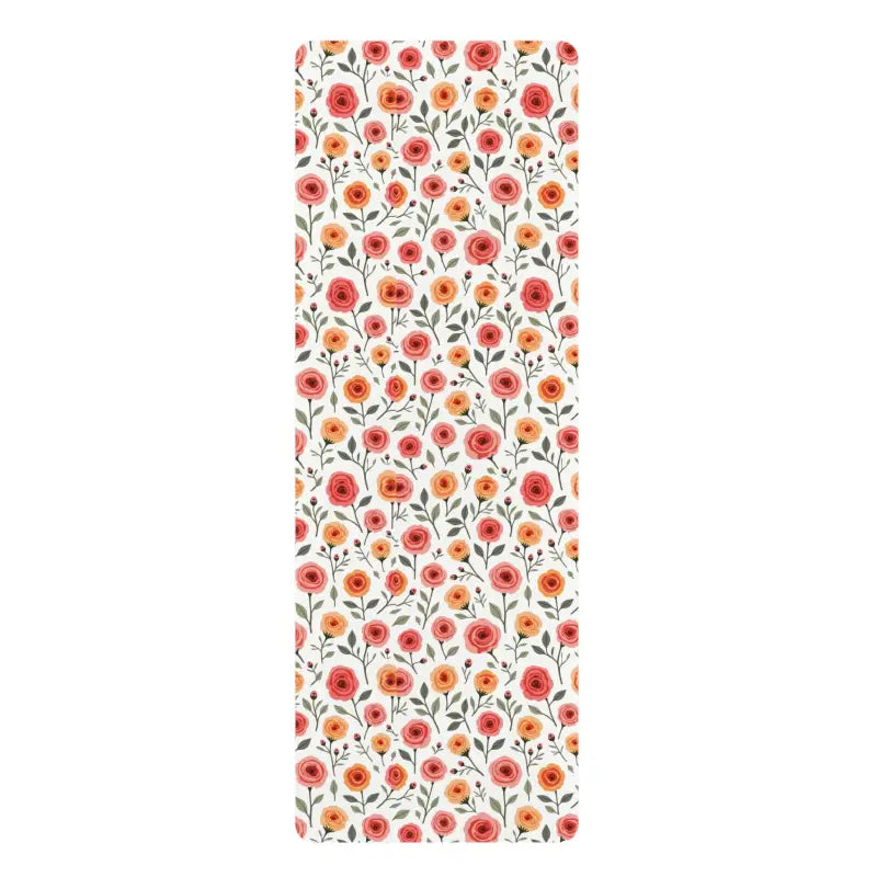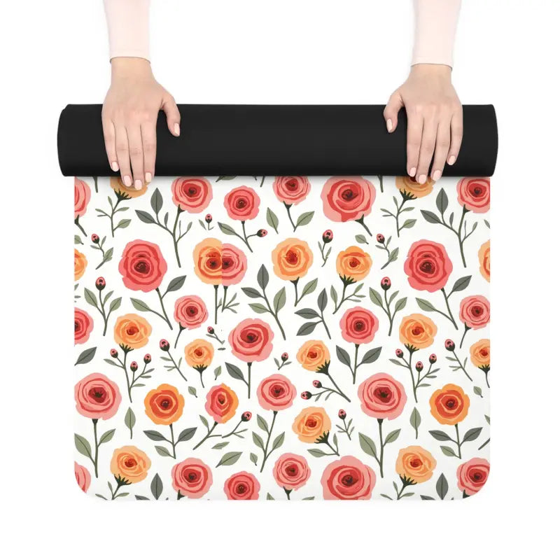 Print: Elegant rose floral design across the full surface, radiating vibrant sophistication for any yoga space.