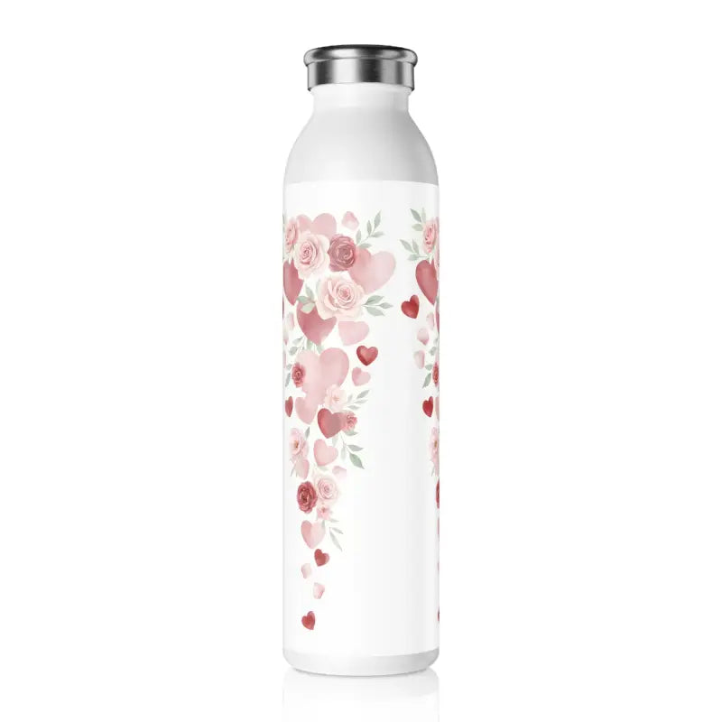 Picture yourself reaching for your water bottle mid-morning, your fingers wrapping around the smooth matte surface as delicate roses and hearts catch your eye, reminding you that even the most practical items in your life deserve to be beautiful. This slim water bottle transforms the mundane act of staying hydrated into a moment of personal style, whether you're rushing between meetings, settling into your yoga mat, or simply sitting at your desk dreaming of your next adventure. The romantic floral pattern isn't just decoration—it's a statement that you refuse to compromise between function and aesthetic appeal. Every sip becomes an opportunity to express yourself, to carry something that feels uniquely yours in a world of boring, generic drinkware. This is hydration reimagined for people who understand that the objects we carry every day shape how we move through the world.