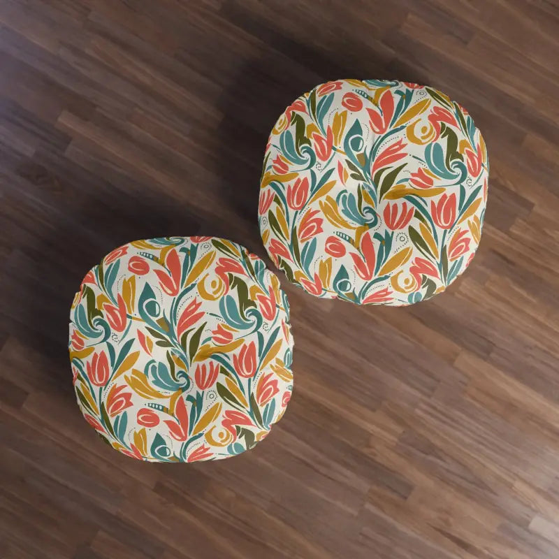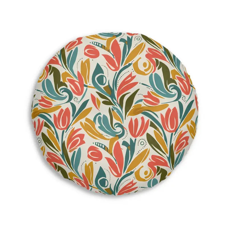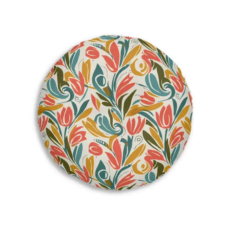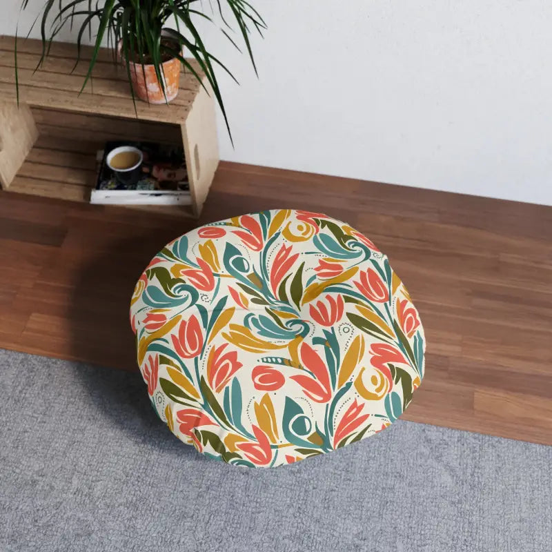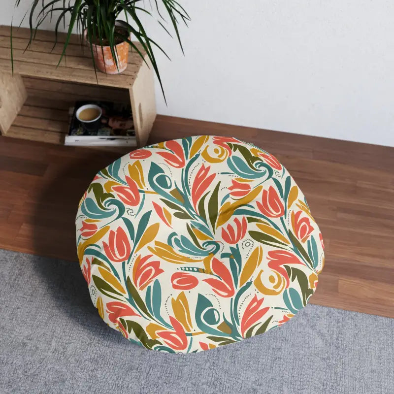 Round Tufted Floor Pillow - Retro Floral Tulip Pattern - DipaliZ