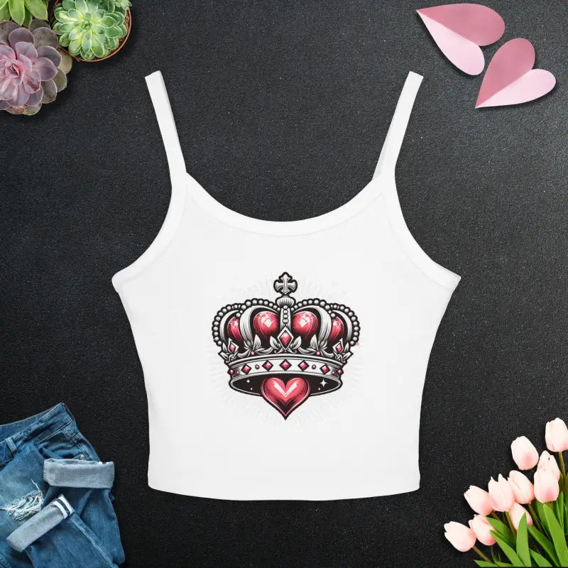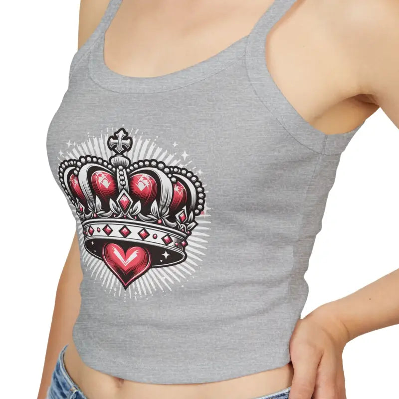 Get ready to elevate your everyday style with the Royal Heart Crown spaghetti strap tank that promises unbeatable comfort, style, and a regal vibe. This is not your average strap tank – it brings a perfect mix of luxe materials, durable design, and an eye-catching print that transforms an everyday look into an effortlessly chic ensemble. Whether you’re out for a hot summer festival, a laid-back brunch with friends, or a zen day at home, this spaghetti strap tank is designed to keep up with your every move.