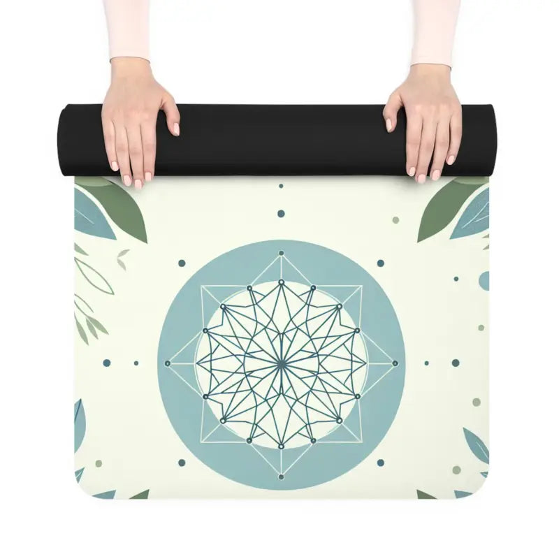 Print: Teal background paired with energizing leaf and geometric patterns—instantly uplifting your workout space.