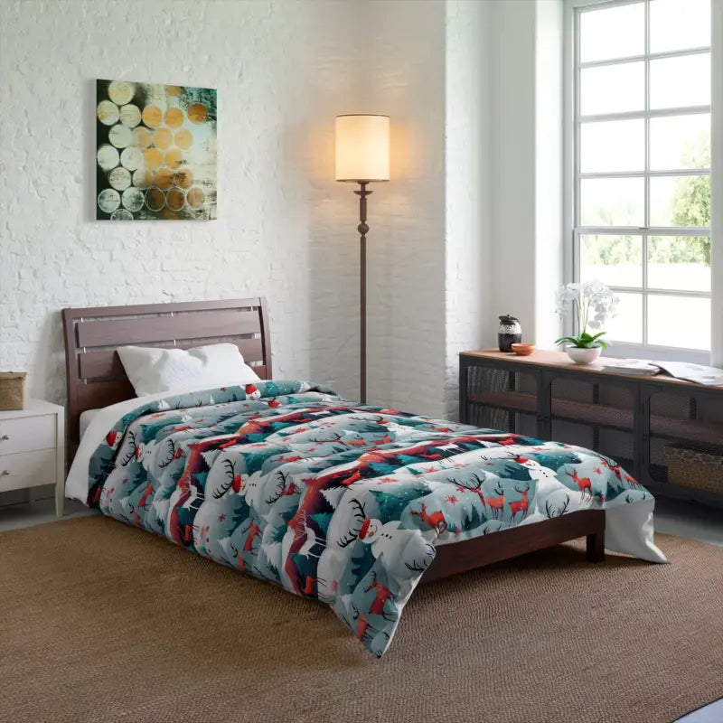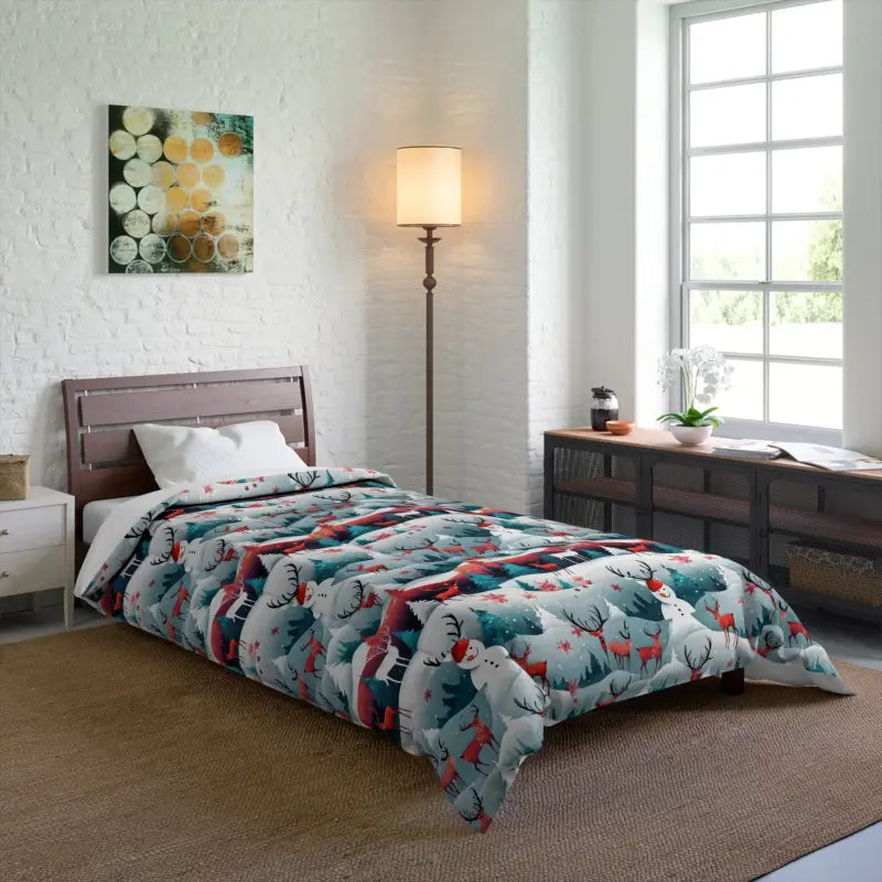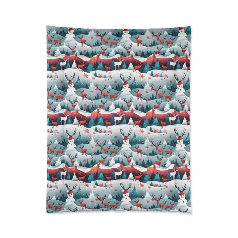 Rudolf Reindeer, Christmas Tree, snowman, Comforter. Comfy, fluffy, and warm. Cozy up underneath our snug blanket for a deep and relaxing sleep. Highlight these premium quality blankets with some unique designs and your home will be lit up with them. This blanket is the perfect solution for cold days in bed with coffee, waiting for the morning light to peak through the window and wake up the house.