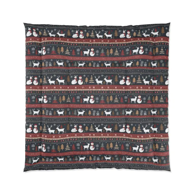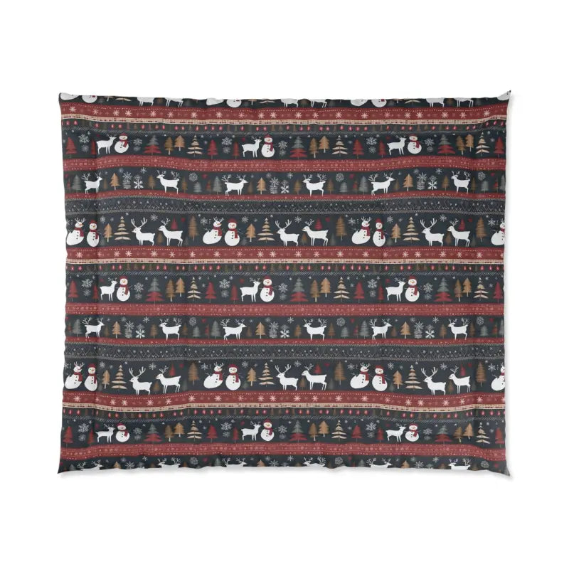 Reindeer Christmas Tree Snowman Comforter - Cozy Winter Bedding - DipaliZ