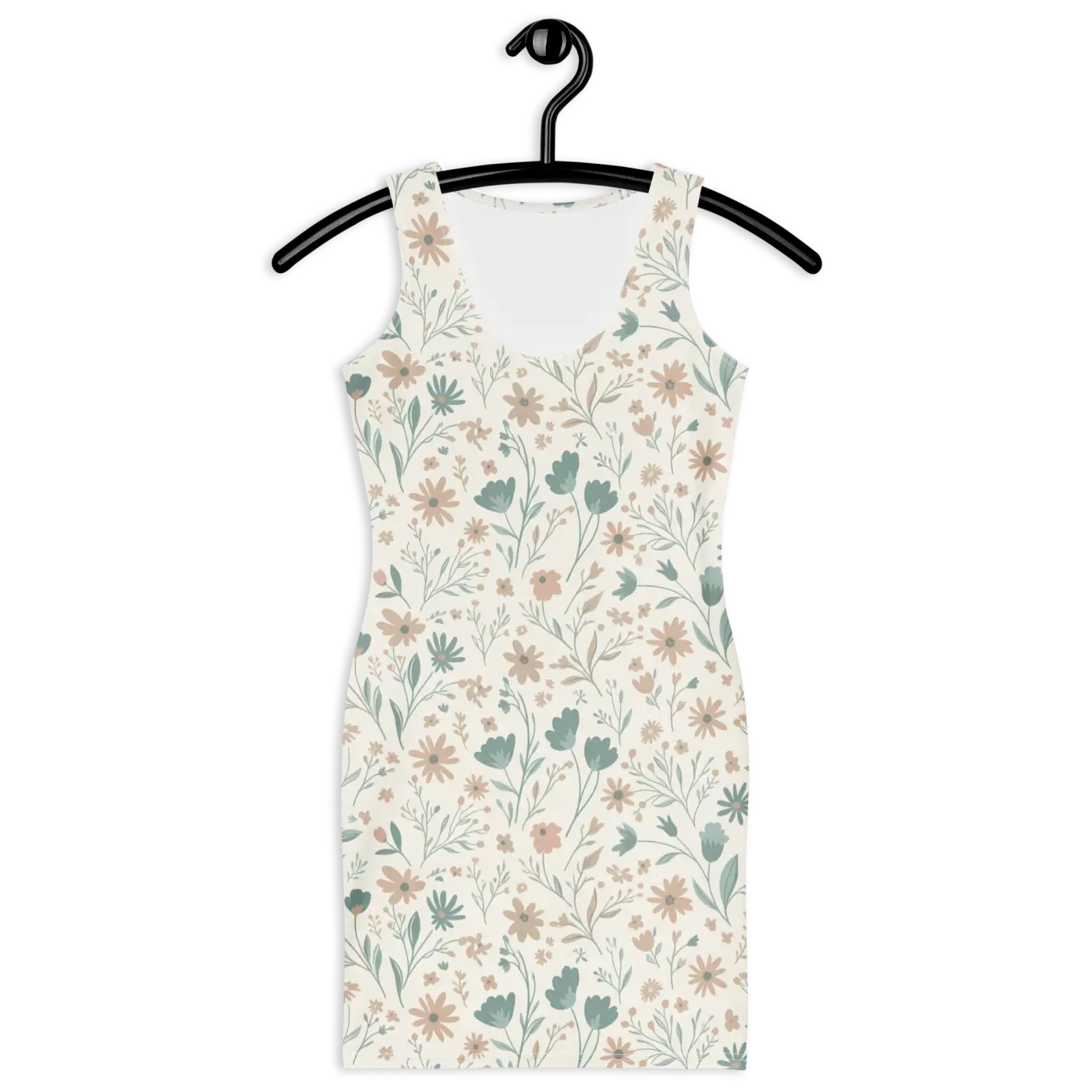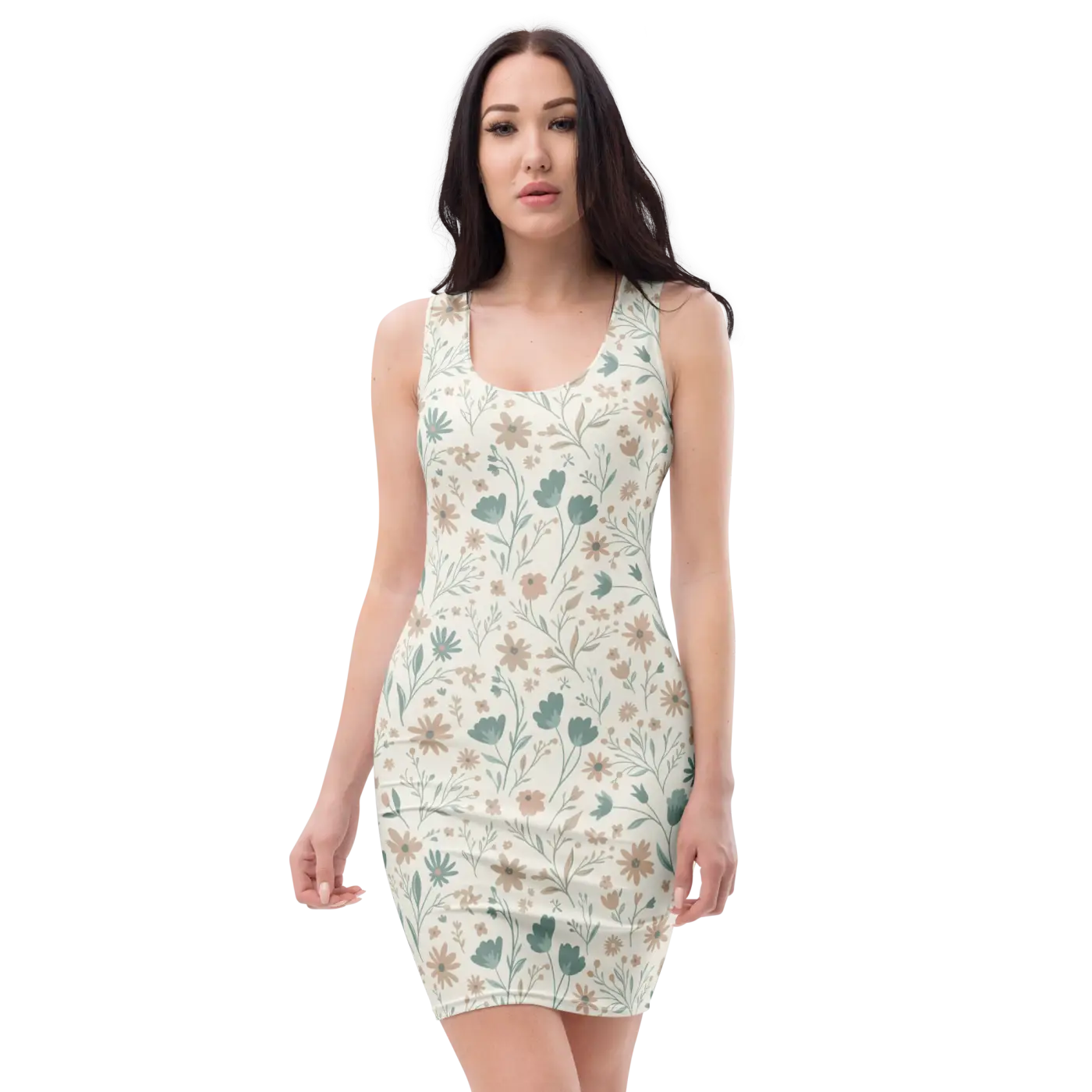 Sage Botanical Bodycon Dress | Women's Sleeveless Floral Fitted Dress
