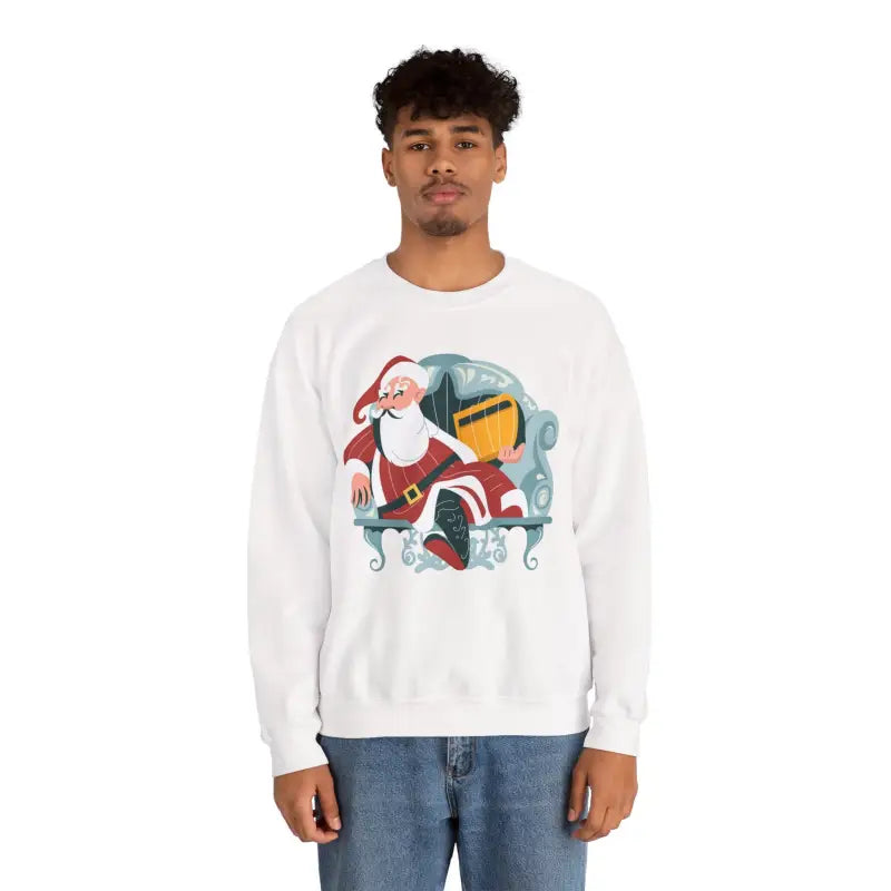 Santa Claus, Unisex Heavy Blend Crewneck Sweatshirt, Unisex Heavy Blend Crewneck Sweatshirt. Ideal for any situation, a unisex heavy blend crewneck sweatshirt is pure comfort. These garments are made from polyester and cotton. This combination helps designs come out looking fresh and beautiful. The collar is ribbed knit, so it retains its shape even after washing. There are no itchy side seams on these sweaters.
