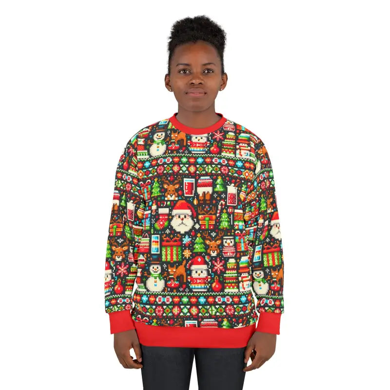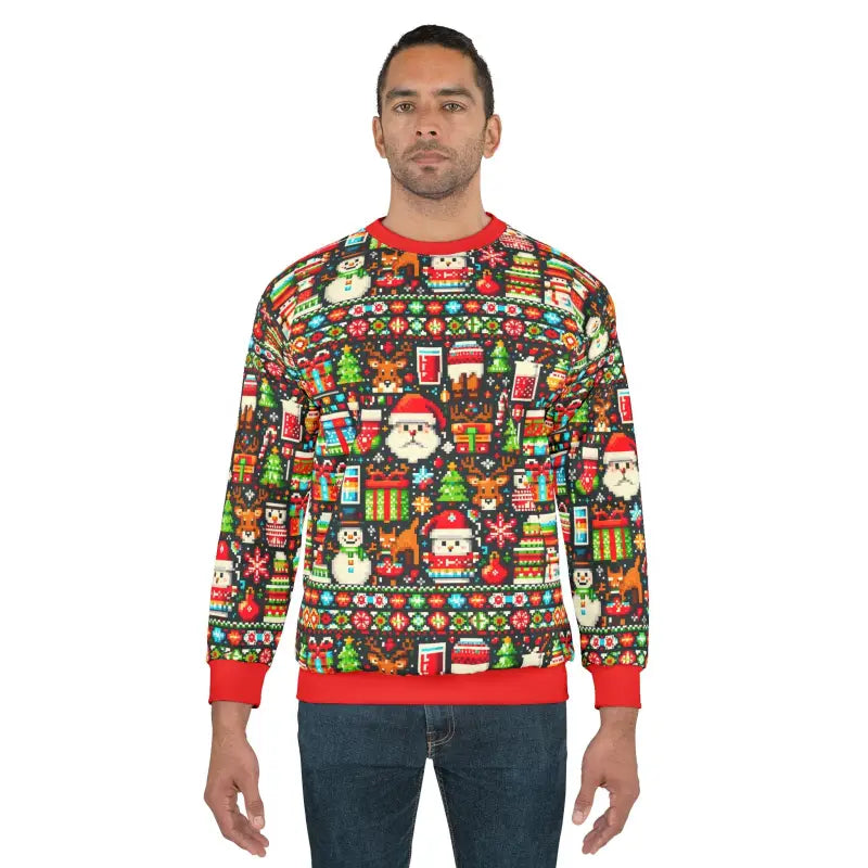 Wrap yourself in the ultimate festive spirit with the Festive Santa Ugly Sweater: Cozy Unisex Crewneck! This all-over print sweatshirt is more than just a holiday garment—it's a statement. Perfectly blending coziness and coolness, this fleece masterpiece is set to turn heads at any holiday gathering.