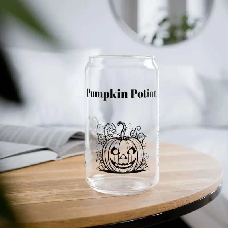 Print: Features bold pumpkin potion text and a collage of glowing scary Halloween pumpkins for the ultimate Halloween statement piece.