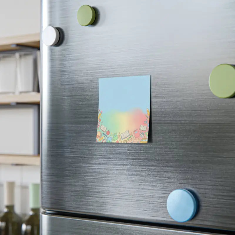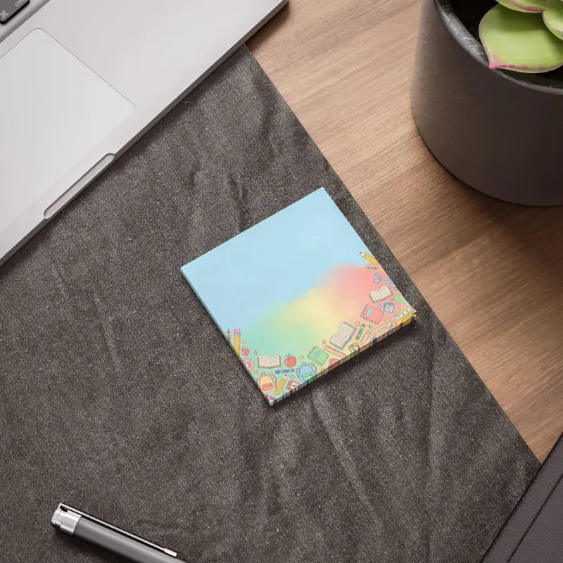 Imagine flipping open your planner to find these delightful sticky notes waiting to capture your brightest ideas. The design draws inspiration from those magical back-to-school moments when fresh supplies and new beginnings fill the air with possibility. Soft pastel tones blend seamlessly with hand-drawn pencils, books, apples, rulers, and backpacks dancing along the bottom edge like treasures scattered across a busy desk. These note pads fit beautifully into dorm rooms, home offices, teacher lounges, and study nooks where organization meets style. DipaliZ creates each pad through sustainable print-on-demand practices, meaning your purchase helps reduce waste while supporting our mission to plant a tree for every twenty dollars spent.