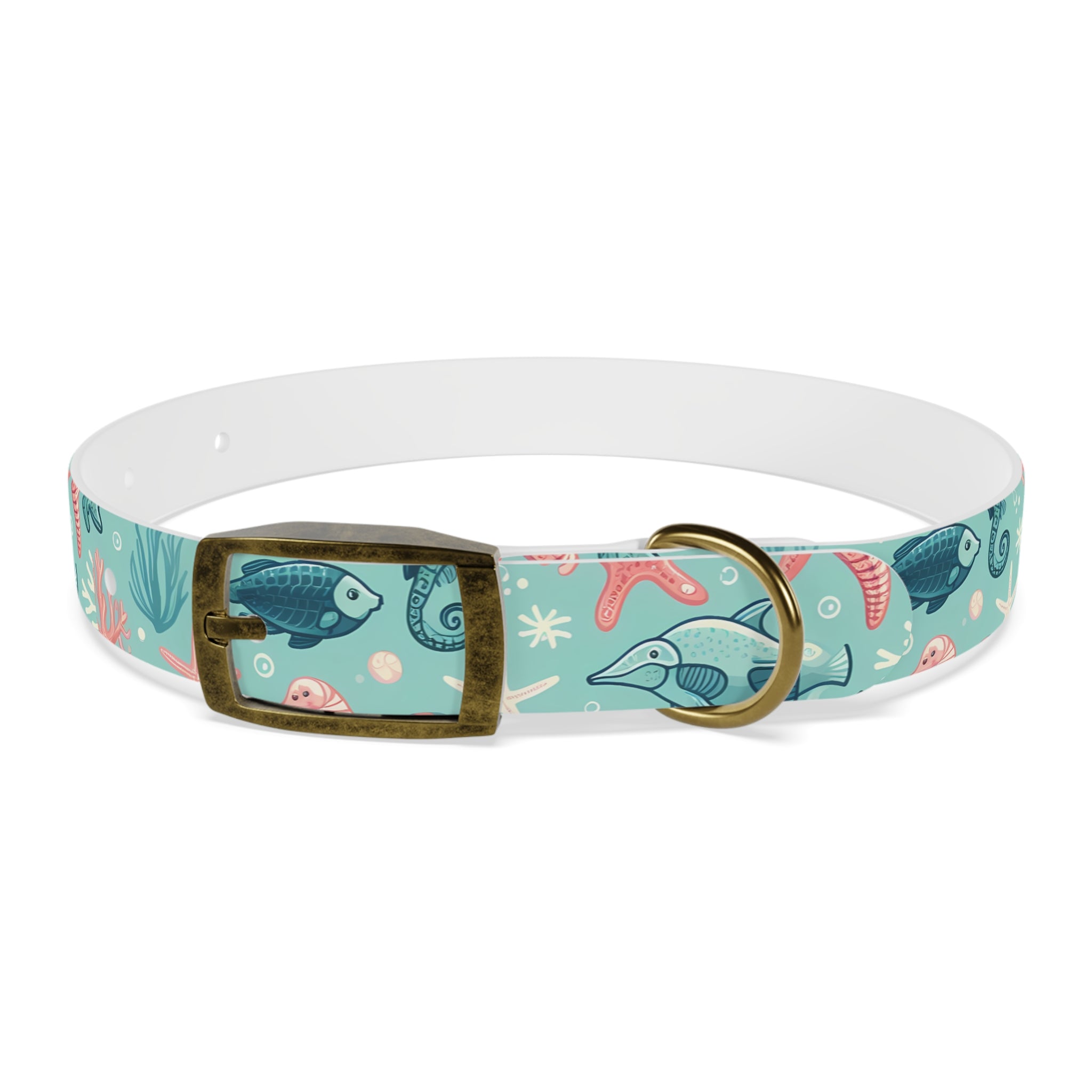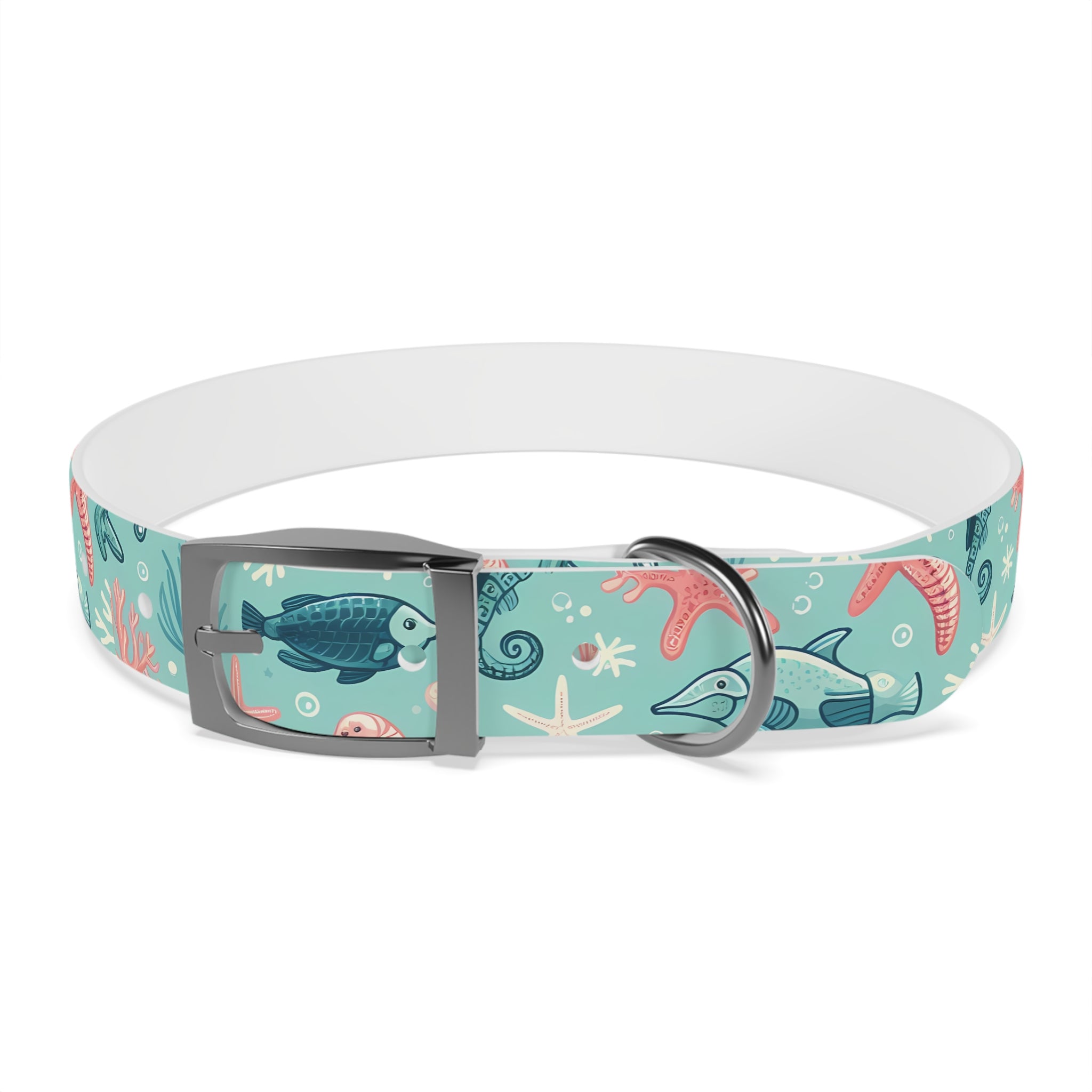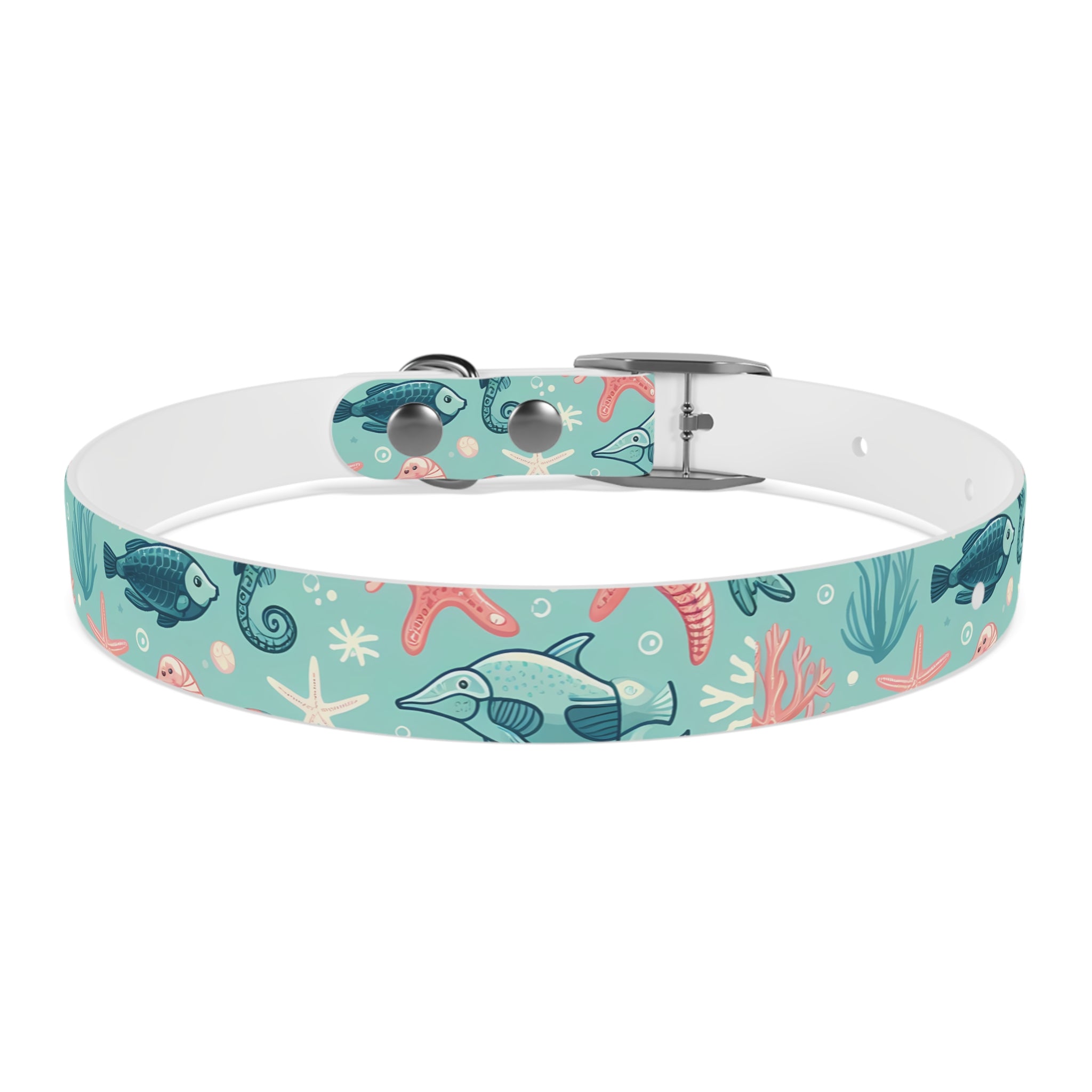 Sea Life Dog Collar — Aqua Fish & Coral Pattern for Pets