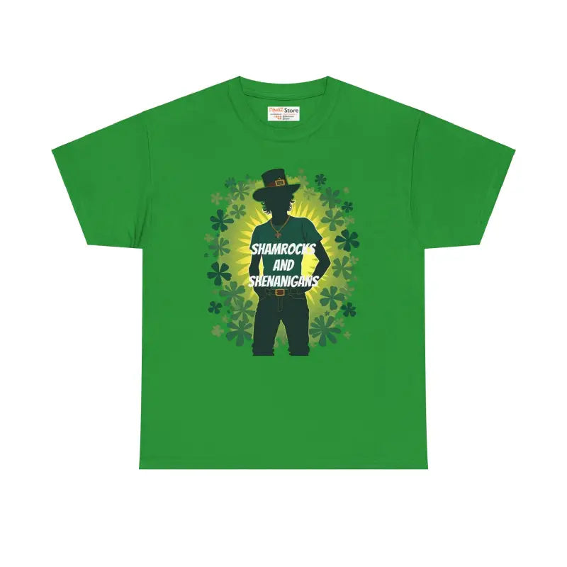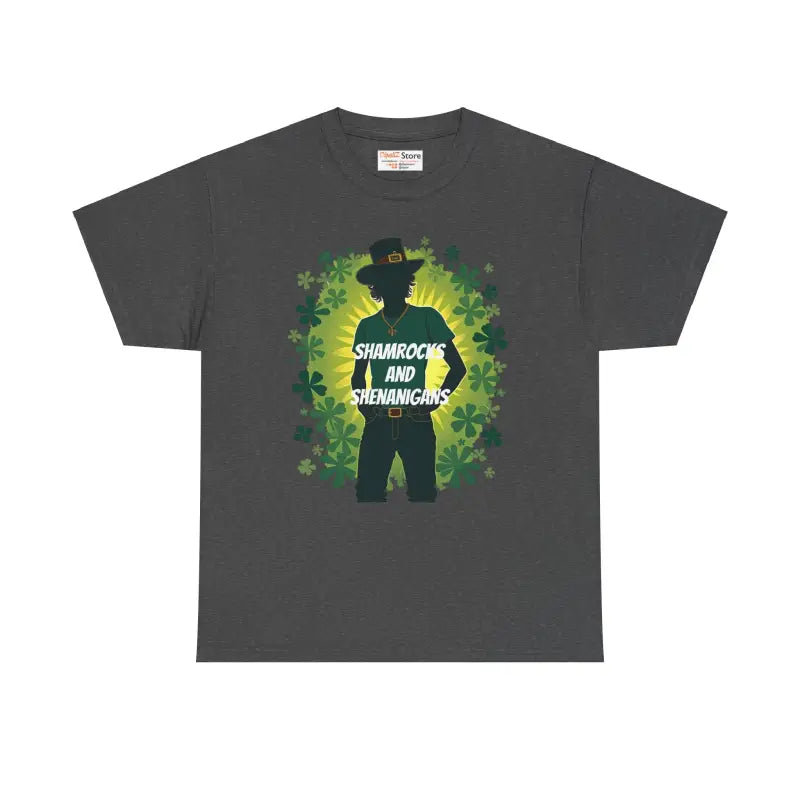 The design is all about celebrating with flair. With a striking shamrock print that bursts with color and a unique twist on the classic motif, this tee stands out in a crowd. The print is spun into the fabric, ensuring an enduring color that won’t fade over time. This unisex heavy cotton piece is designed for those who love to make a statement, whether you're at an outdoor parade or just hanging out with friends.