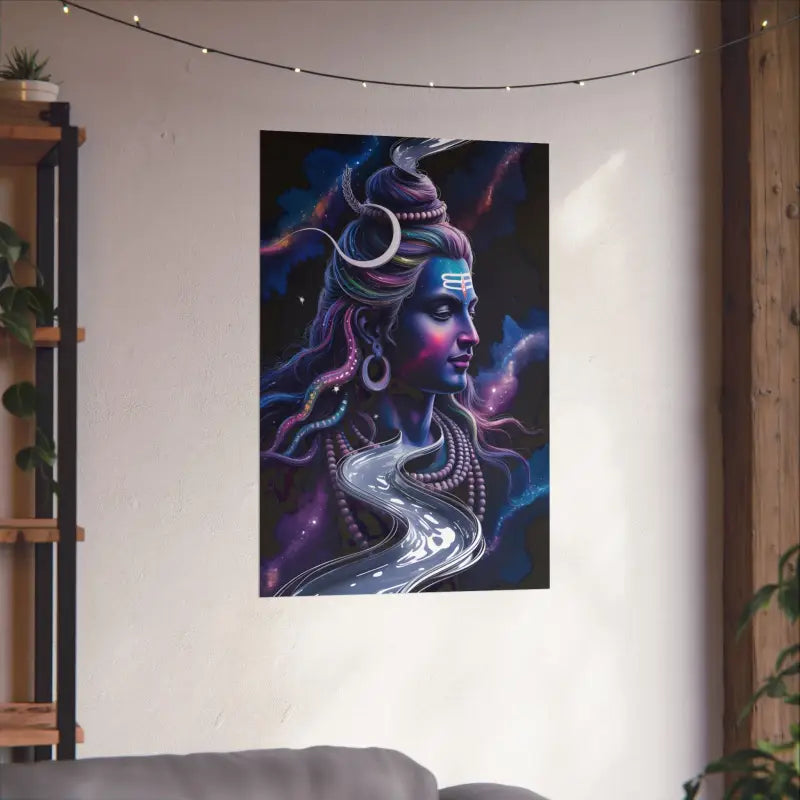 Shiva Cosmic River Matte Poster - Spiritual Hindu Art - DipaliZ