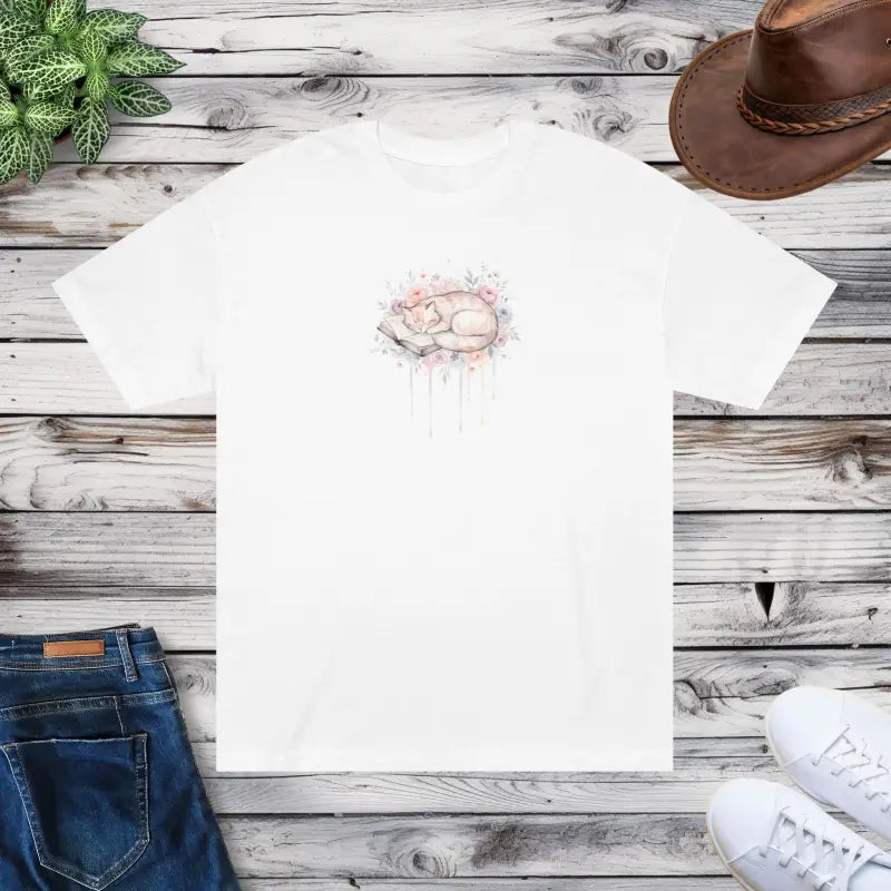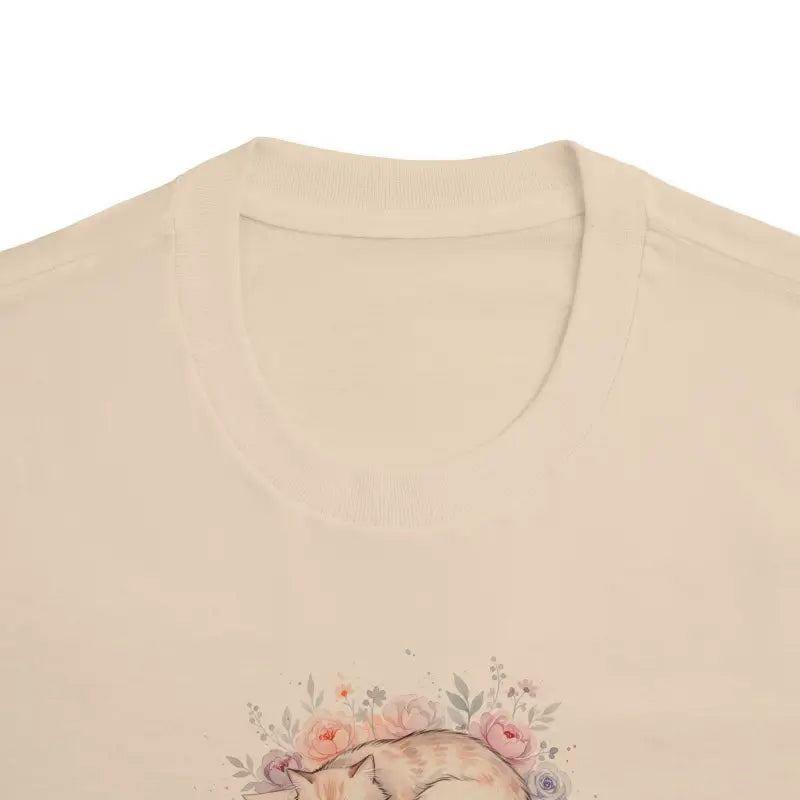 This isn't your basic throwaway tee. The fabric strikes that sweet spot between lightweight breathability and substantial quality, giving you a shirt that moves with you through busy days without clinging or losing its shape. The classic fit sits comfortably across the shoulders and chest, offering plenty of room for natural movement while maintaining a flattering silhouette that works for all body types. The sleeping cat watercolor artwork takes center stage with its hand-painted aesthetic, featuring gentle washes of color that blend florals and feline grace into a design that feels personal and artistic rather than mass-produced. This floral nap design speaks to anyone who values creativity, loves cats, or simply appreciates wearable art that doesn't scream for attention but earns it anyway.