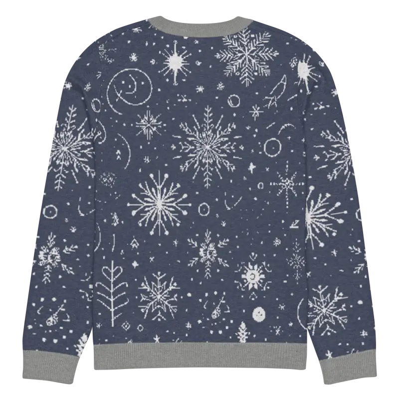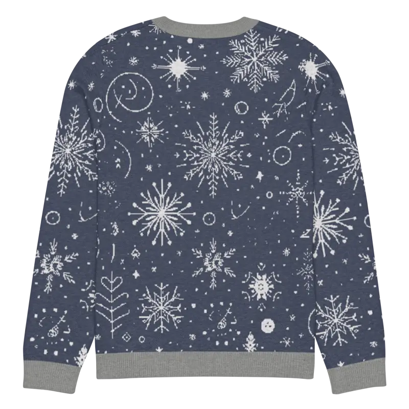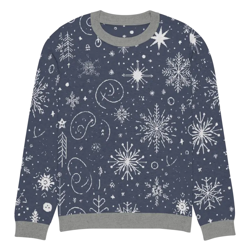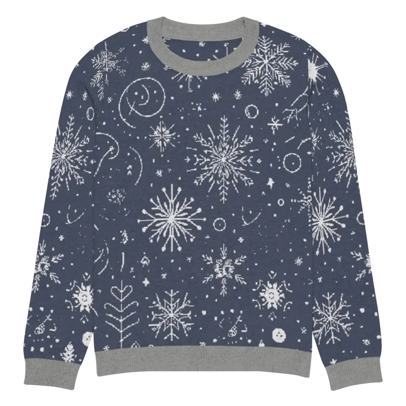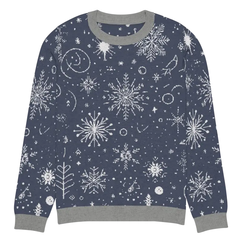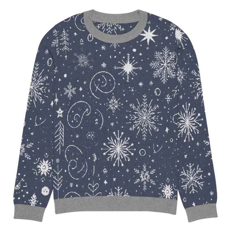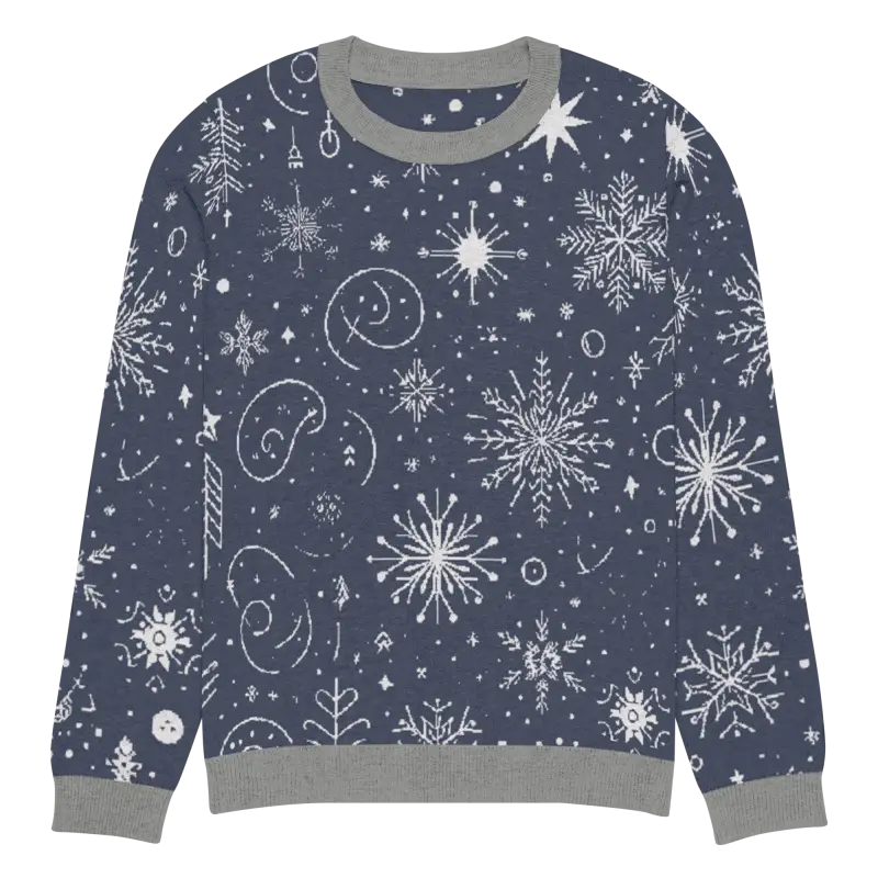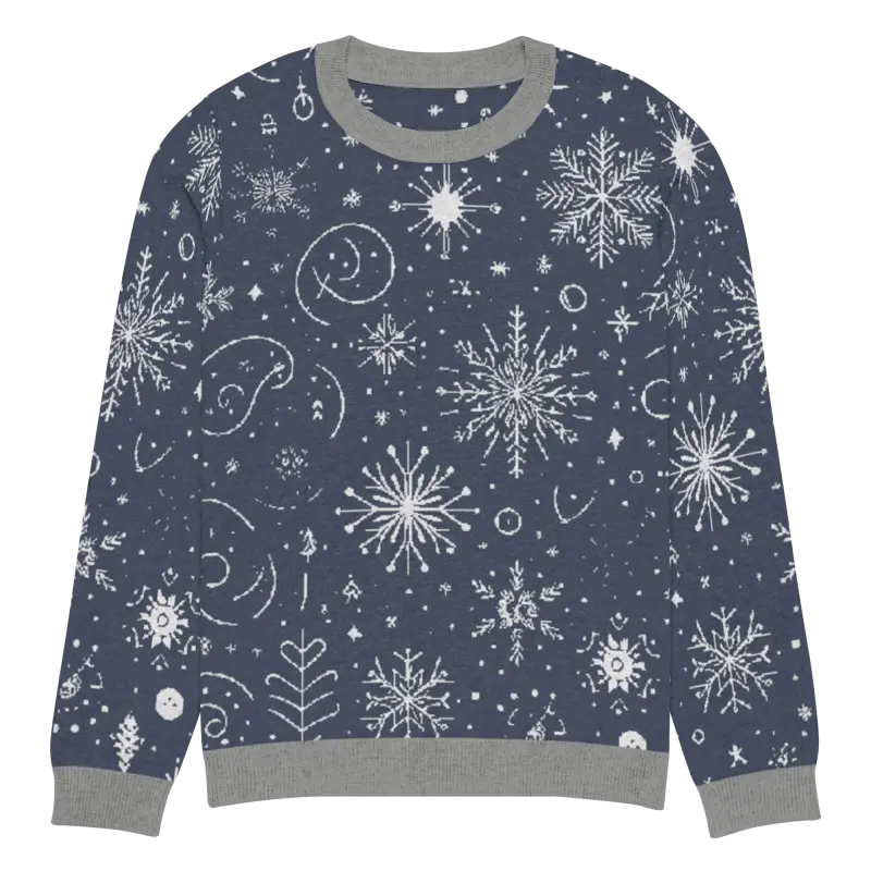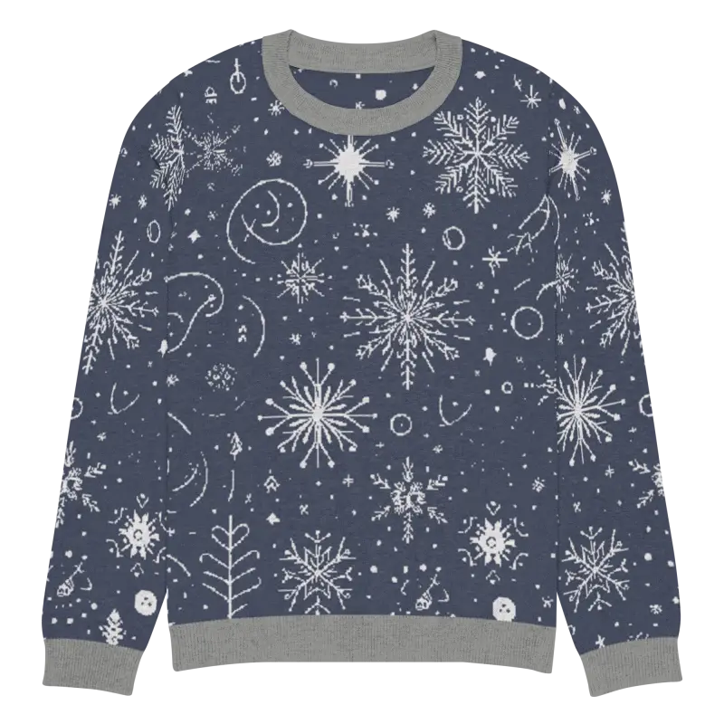 Snowflakes elegantly cascade over a rich navy blue backdrop in this stylish knitted crew neck sweater. It's your go-to piece if you're looking to stay cozy, yet chic, through crisp winter days or chilly autumn nights. The extra-soft knit is not only kind to your skin, wrapping you in warmth but also elevates your style with its classic crew neck design. It's all about versatility - throw on some jeans for an effortlessly cool, casual vibe, or up your fashion game and style it for a sophisticated night out on the town.