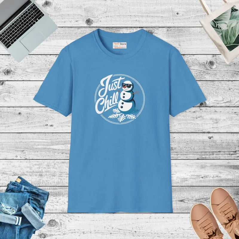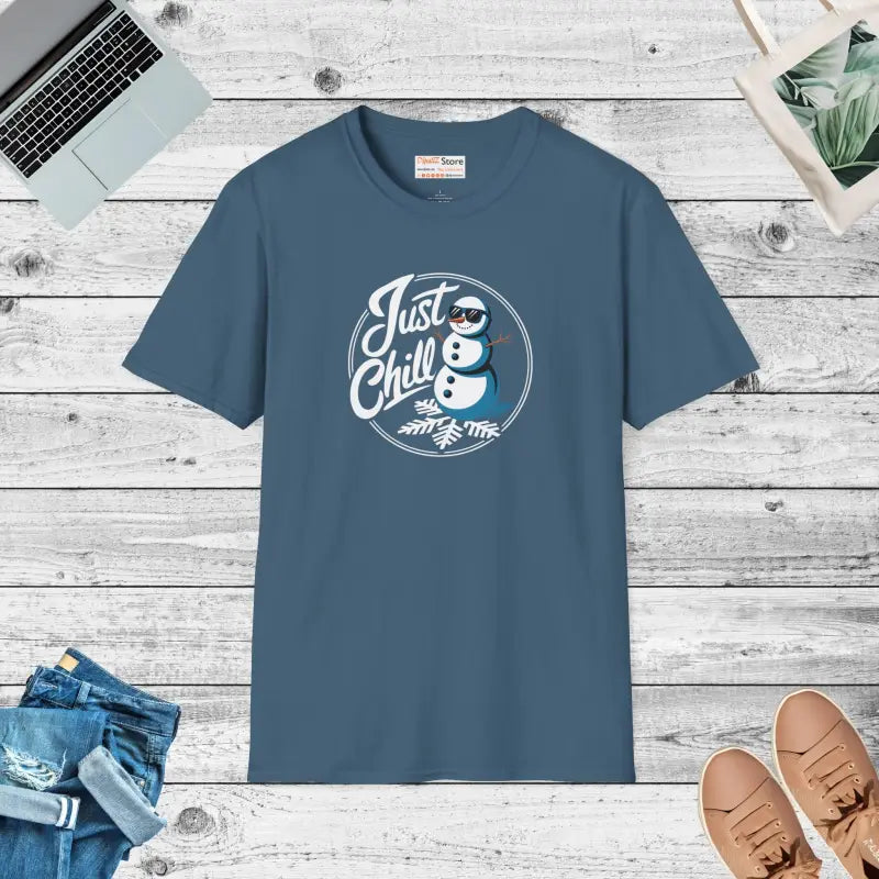 Introducing the ultimate blend of style and comfort for every season with the Chill out in Style: Unisex Ring-spun Cotton T-shirt. Strut your stuff wearing a tee that brings both a laid-back vibe and a dose of cheerful coolness with its snowman motif coupled with the easy-going phrase Just Chill. Crafted from 100% cotton for solid hues, or blended heather colors and sports grey that include polyester for a bit of extra flexibility, this shirt is specifically designed to be your go-to for any occasion.
