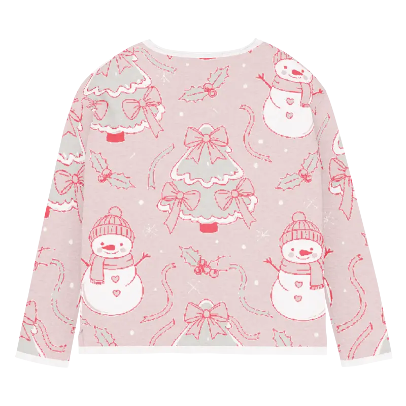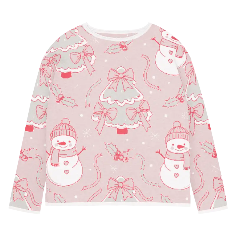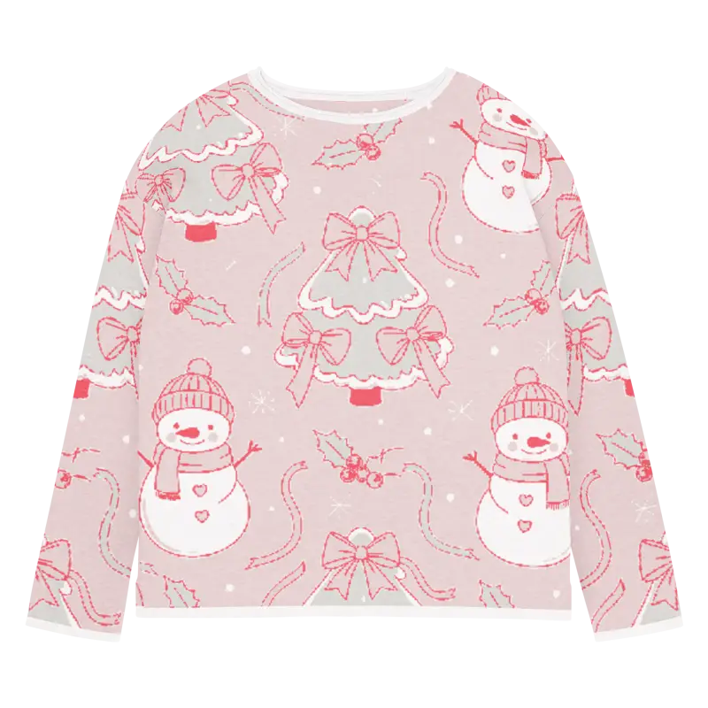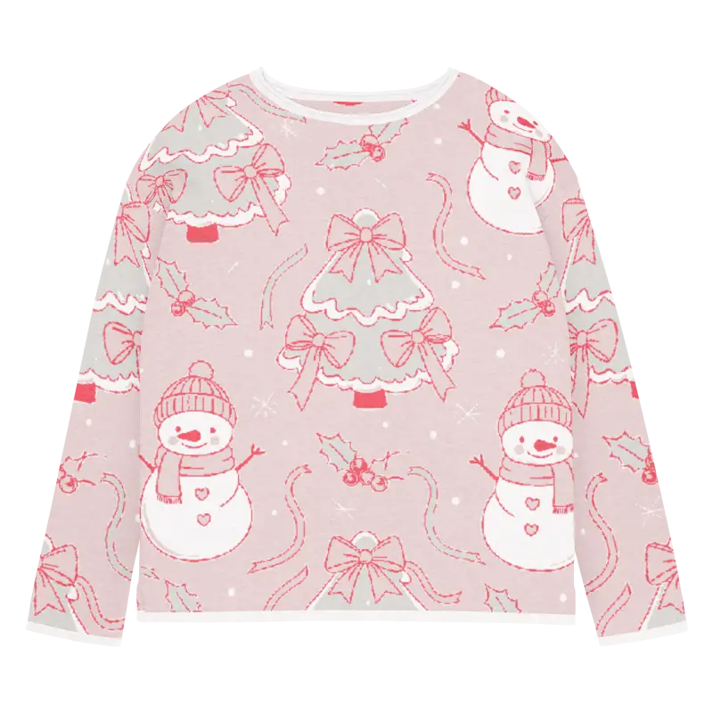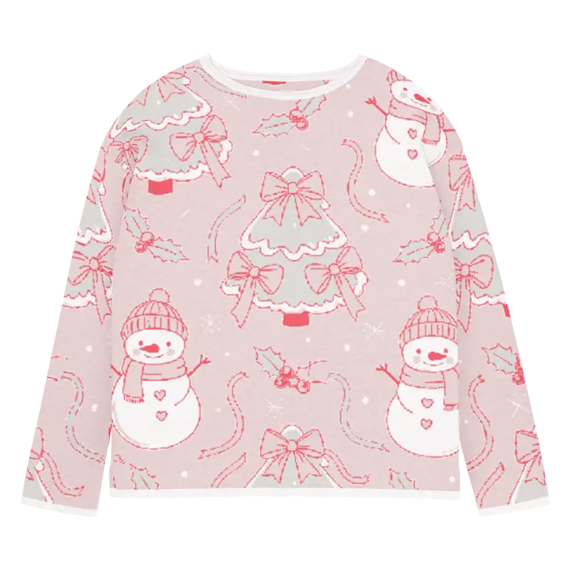The charming snowman design pops against the lovely pink backdrop, creating a winter wonderland scene you can wear. The playful motifs capture the magic of snowy days while the soft pink hue adds feminine flair that brightens even the grayest winter mornings.