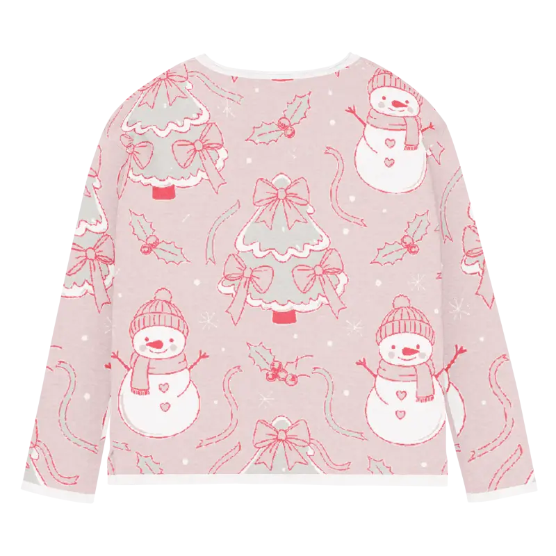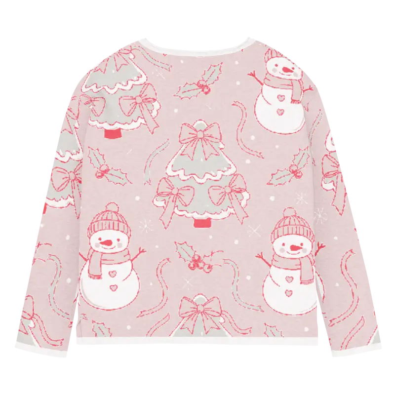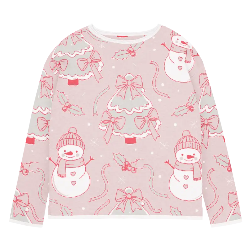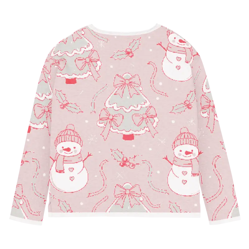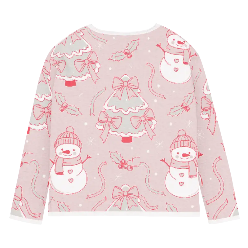 The charming snowman design pops against the lovely pink backdrop, creating a winter wonderland scene you can wear. The playful motifs capture the magic of snowy days while the soft pink hue adds feminine flair that brightens even the grayest winter mornings.