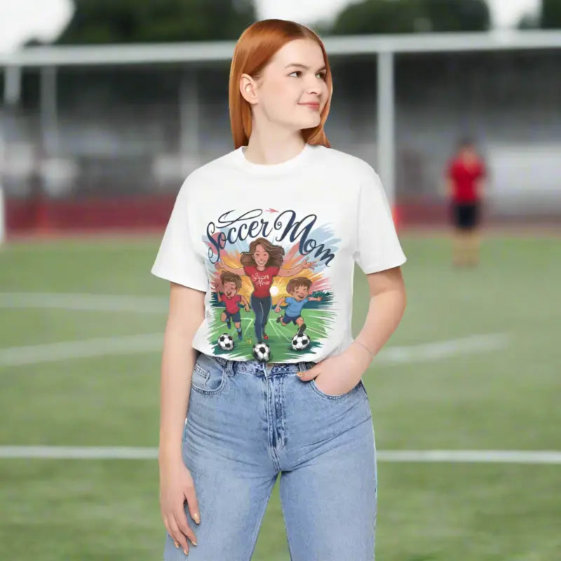 Unleash your inner superstar and roll up to the game in unrivaled style with the Ultimate Soccer Mom Tee! This is not just any shirt; it's a blend of iconic flair and unbeatable comfort that's certain to elevate your game day experience. Designed for those who juggle schedules, drive carpool, and still cheer the loudest from the sidelines, this short sleeve tee is crafted from 100% Airlume combed and ringspun cotton, ensuring a fit as soft as it is sturdy.