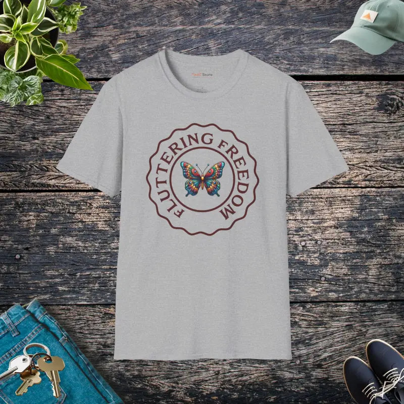 Fluttering Freedom Cotton Tee - Softstyle Butterfly Shirt - DipaliZ