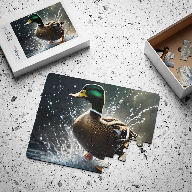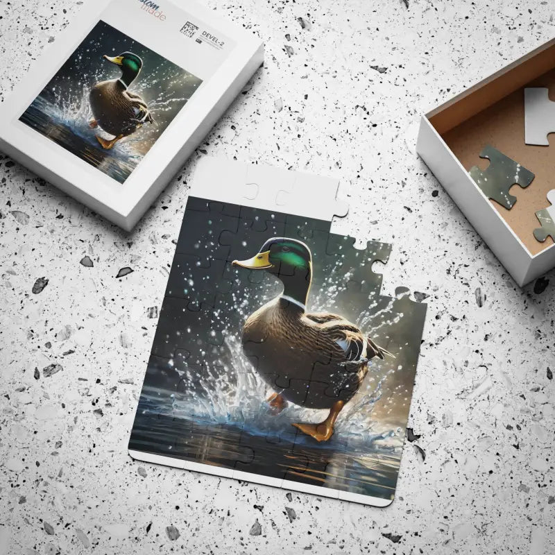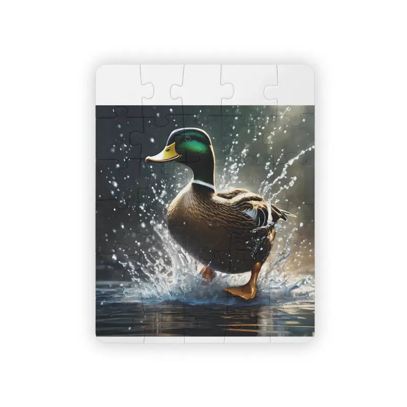 Splashing duck, Kids' Puzzle, 30-Piece. Puzzles are an all-time favorite activity, you can help youngsters have some quality time by solving kid's puzzle. Available in a toddler-friendly 30-piece pack, each puzzle comes with large pieces and rounded corners for safety and parental peace of mind. Each puzzle is made with chipboard and comes with a reference photo for problem-solving.