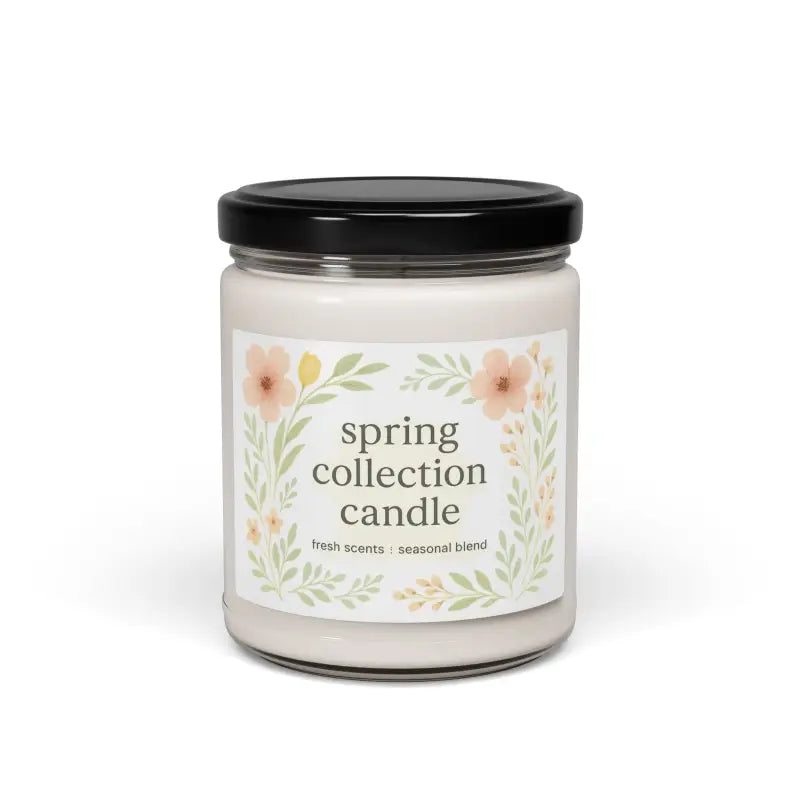 Featuring a curved glass jar in pastel rose and mint hues, this collection scented candle brings a touch of elegance and spring vibes to your shelf. The gentle gradient and delicate floral motifs capture the essence of the season, making every flicker feel like a stroll through a blooming garden.
