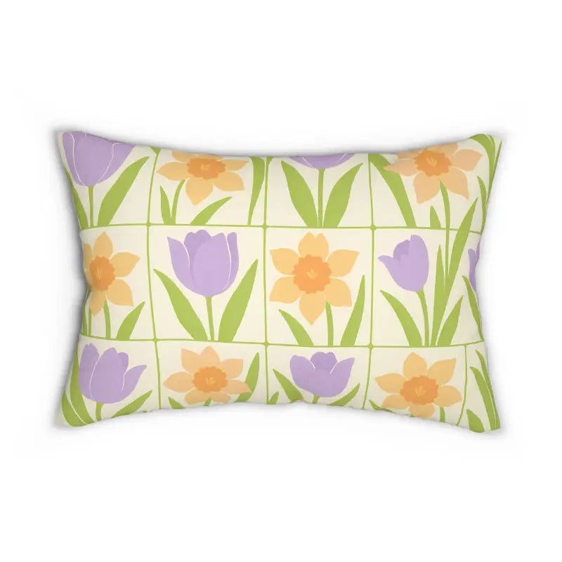 Premium Spring Floral Lumbar Pillow - Vibrant Blooms - DipaliZ