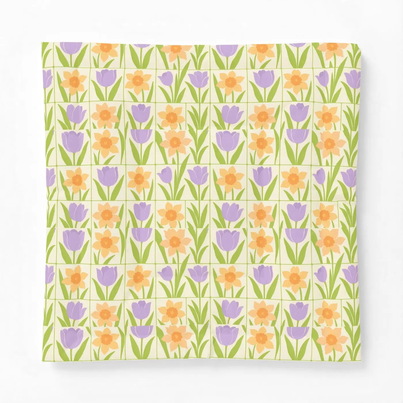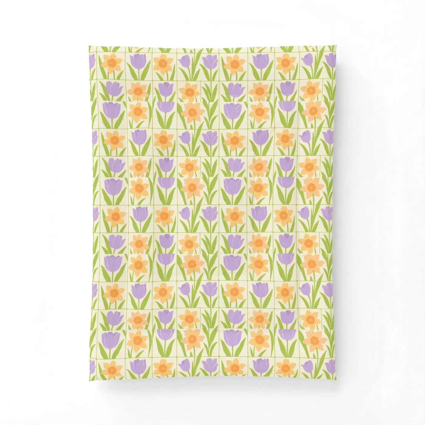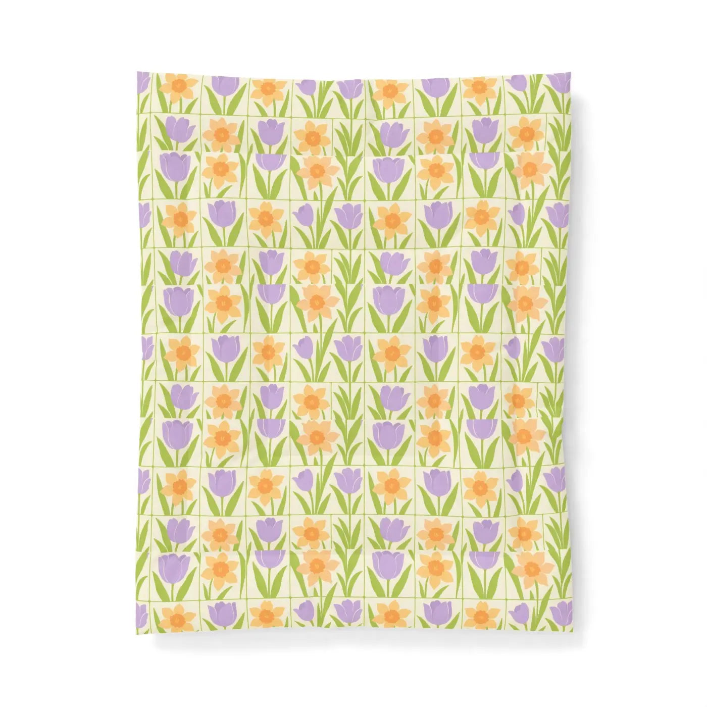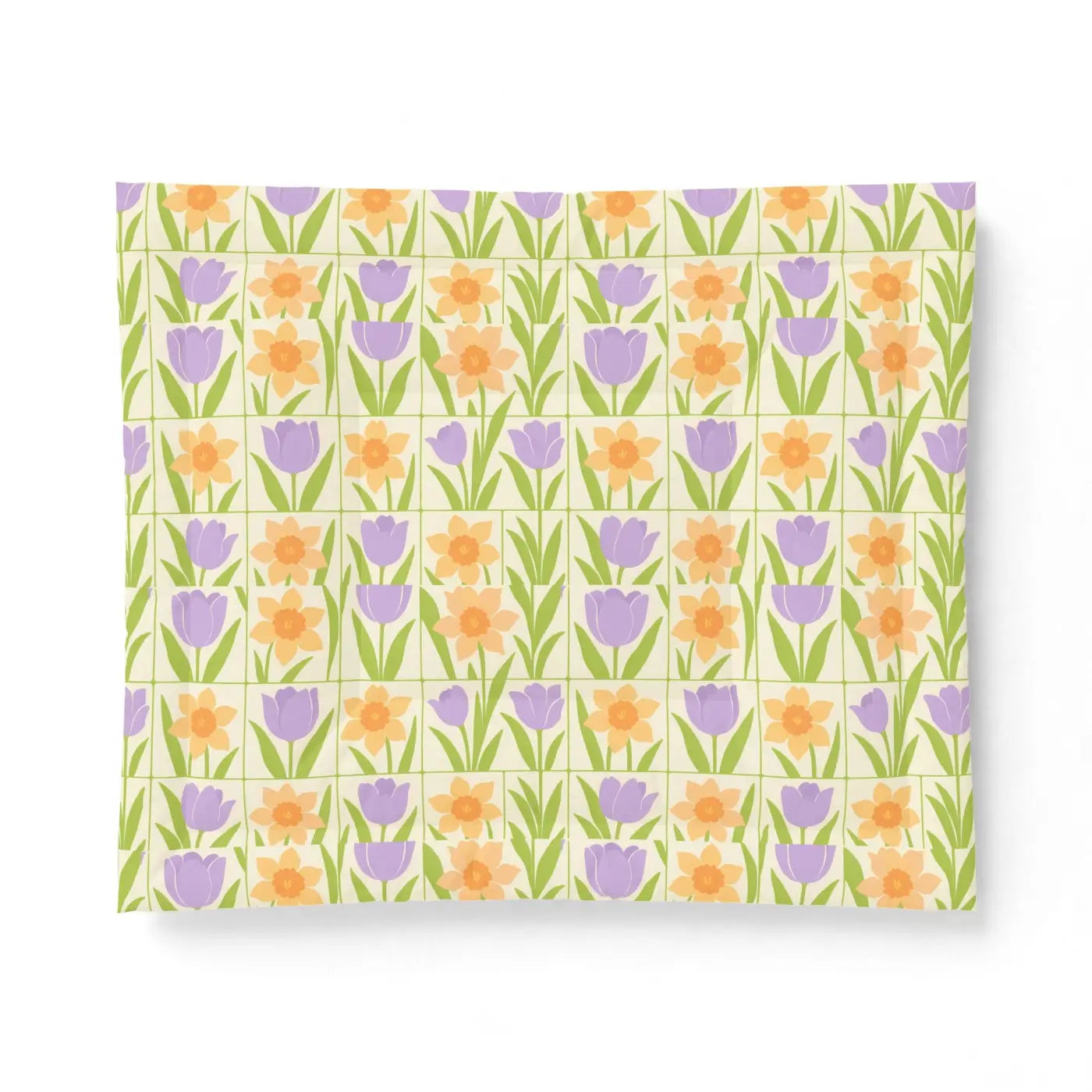 Inspired by peaceful spring gardens, this spring floral quilt showcases gentle purple tulips and sunny orange daffodils in a clean double-square pattern. Lightweight and breathable, the floral quilt creates a crisp, fresh feel perfect for lazy mornings or quiet evenings. Made sustainably, it brings eco-friendly warmth to your natural-colored bedroom sanctuary.