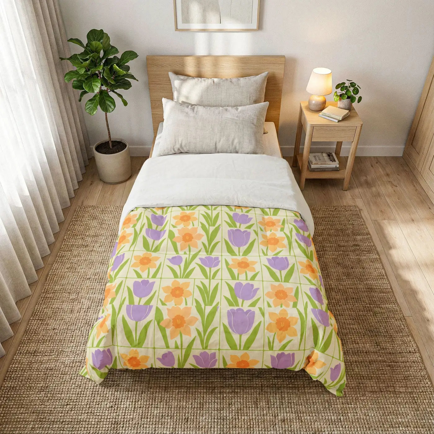 Spring Floral Cotton Comforter - Tulip and Daffodil - DipaliZ