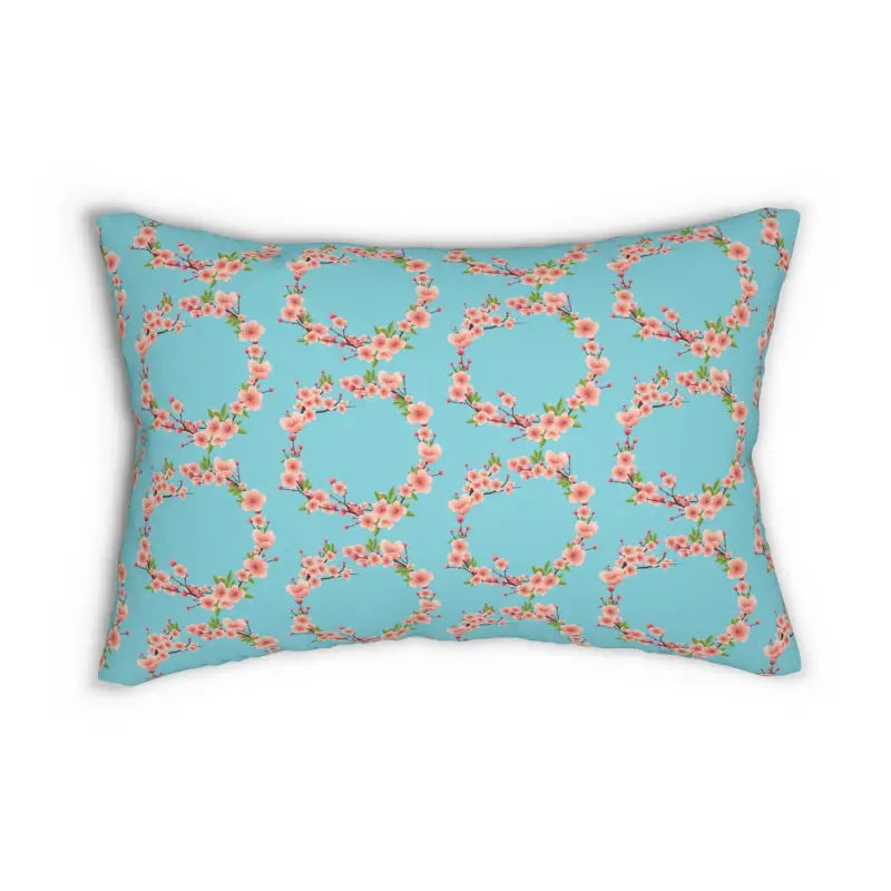 Floral print on blue, Spun Polyester Lumbar Pillow. Add this beautiful spun-polyester lumbar pillow to your home decor pieces today. It comes with a stuffing pillow included. The casing is made of a spun polyester fabric that is inherently mildew and water-resistant. You can place your design on both sides or have a different design on each side. It has a hidden beige zipper to maintain a finished and stylish look.