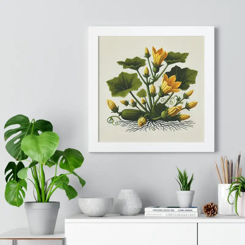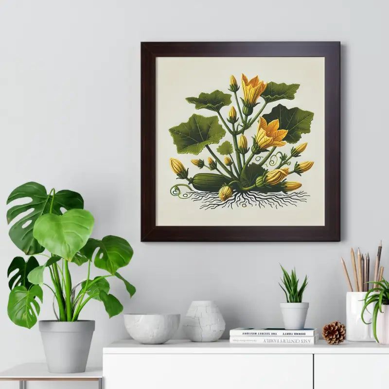 Perfect for adding a touch of sophistication to your home, office, or art studio, this framed vertical squash plant poster is more than just decor; it's a statement. Whether you're sprucing up your living room, looking to impress clients in a reception area, or simply creating a cozy corner for artistic inspiration, this poster is your go-to pick. It seamlessly complements a variety of styles, from modern minimalism to rustic charm.
