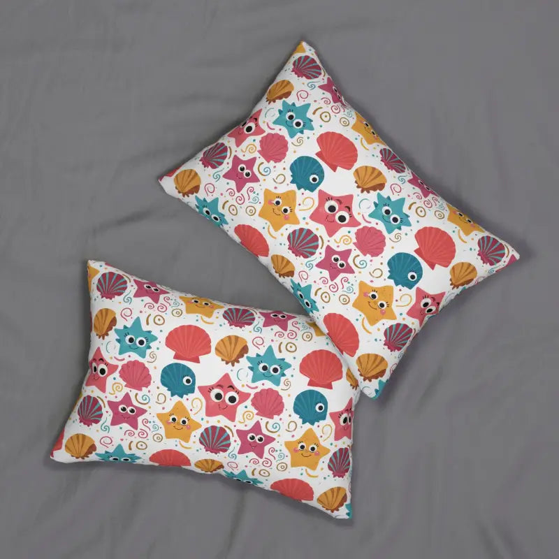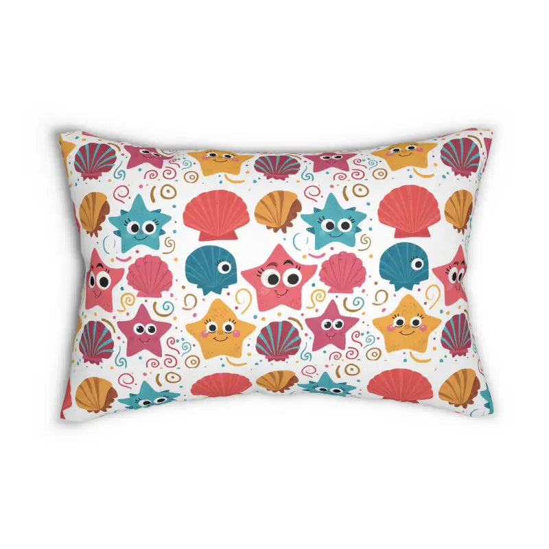 Starfishes and Sea Shells Spun Polyester Lumbar Pillow