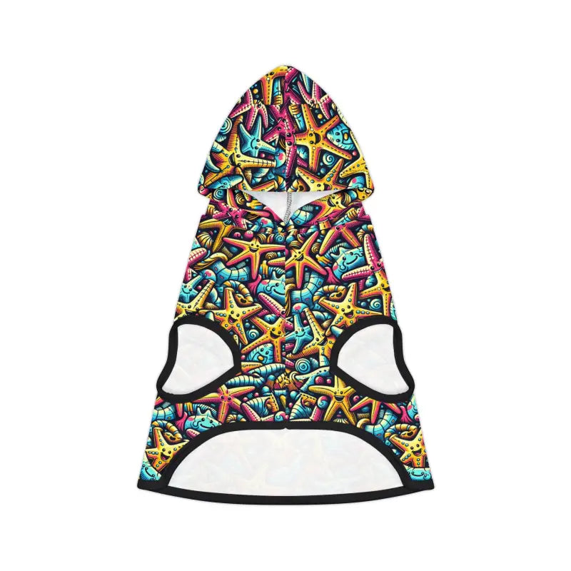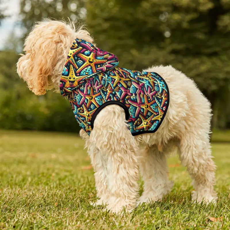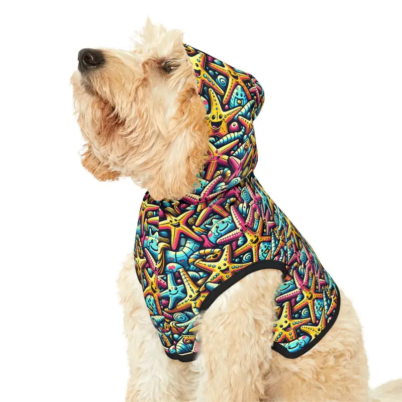Crafted under strict DipaliZ Pro Limited quality standards, this hoodie features reinforced seams, colorfast dyes, and a unique print technique that ensures every starfish motif shines brilliantly without fading—an exclusive touch your pup will love