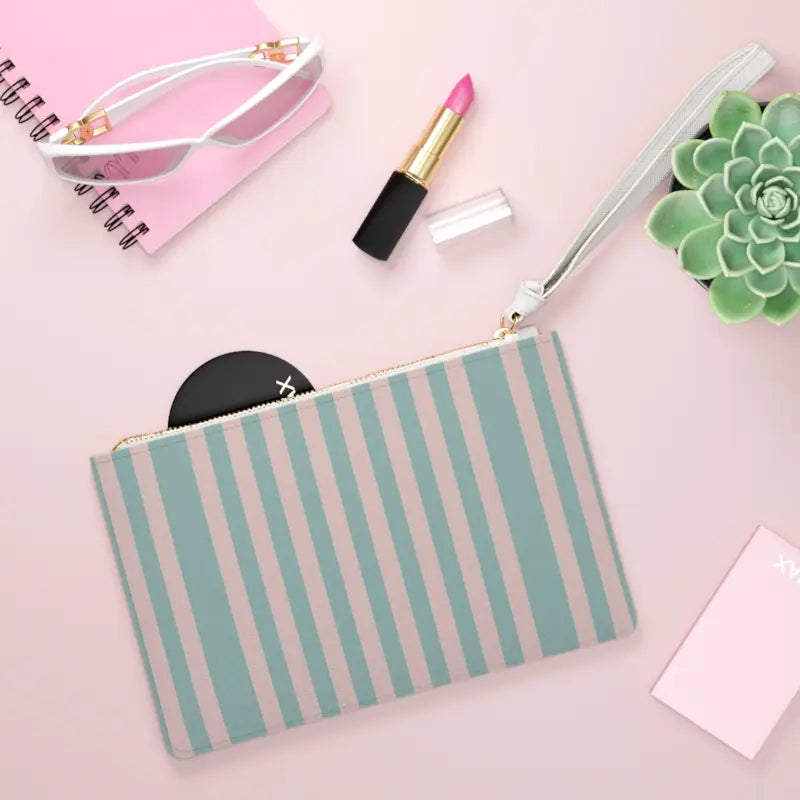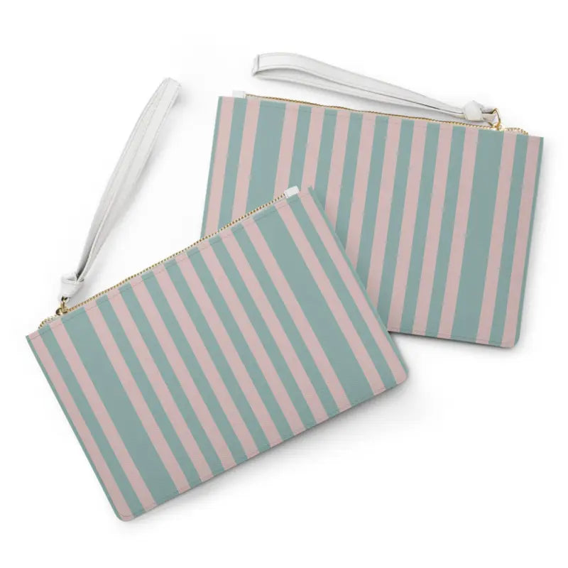 Picture this: you're meeting friends for brunch, then heading straight to an evening gallery opening, and you need one sleek accessory that works for both without missing a beat. This striped pastel clutch is your answer. The moment you slip it onto your wrist, you'll feel the soft saffiano-textured surface against your fingers, a subtle luxury that whispers sophistication without shouting for attention. Muted teal and blush stripes create a calming yet confident aesthetic that complements everything from your favorite denim to that little black dress you save for special occasions. The white wrist strap keeps your hands free for coffee cups, handshakes, or spontaneous photo ops while the compact silhouette ensures you're carrying just what matters. This pastel clutch bag isn't just an accessory, it's the finishing touch that signals you've got your life beautifully together.
