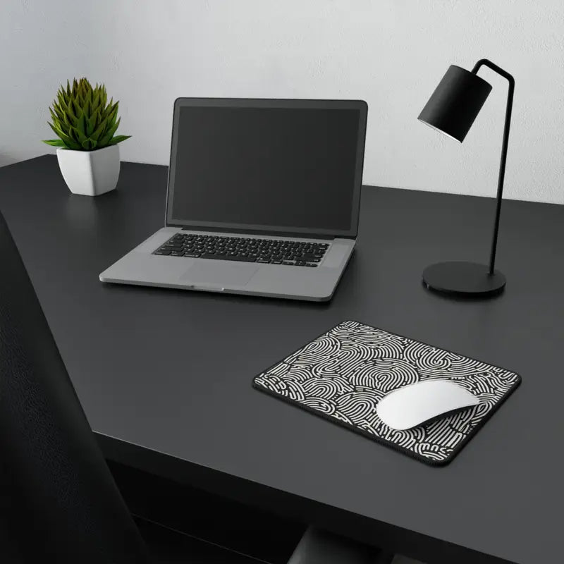 This gaming mouse pad pops in black and white fingerprint motifs that add a bold vibe to any setup. Its sleek rectangular shape hugs your desk edge, while the high-contrast design catches the eye and sparks conversation during intense gaming sessions.
