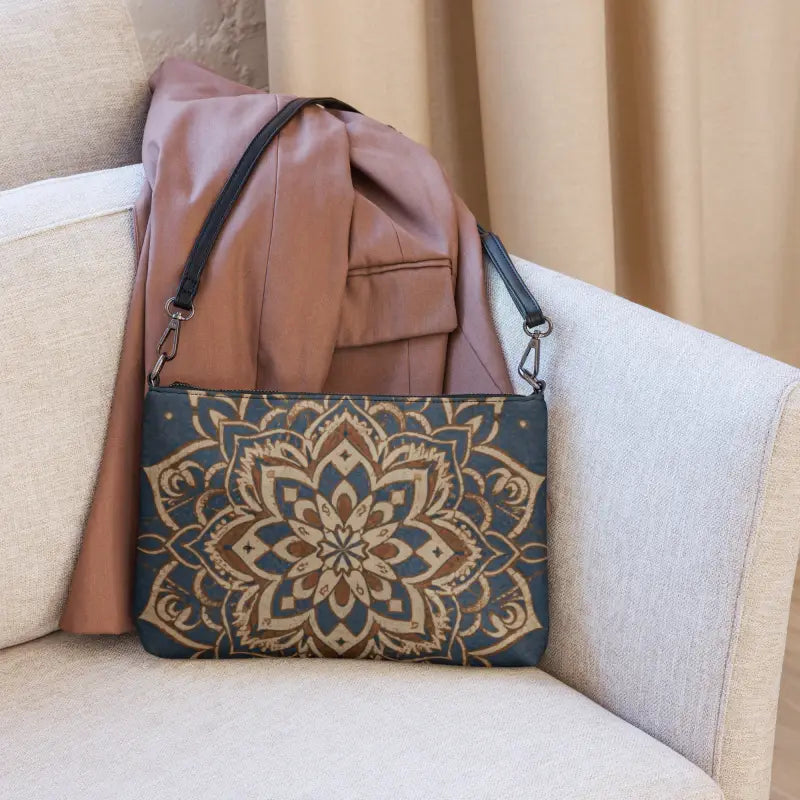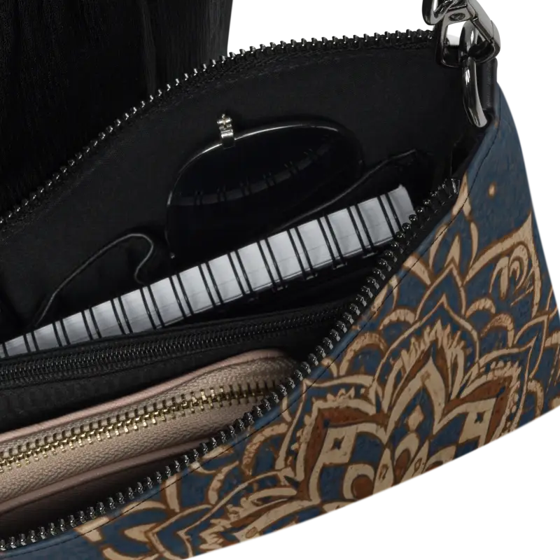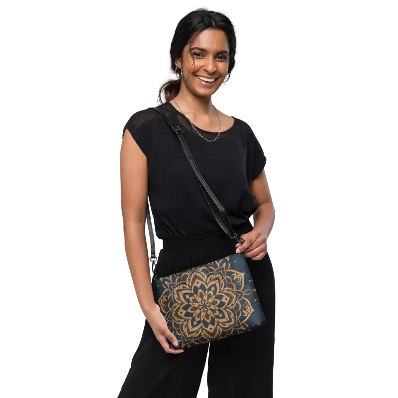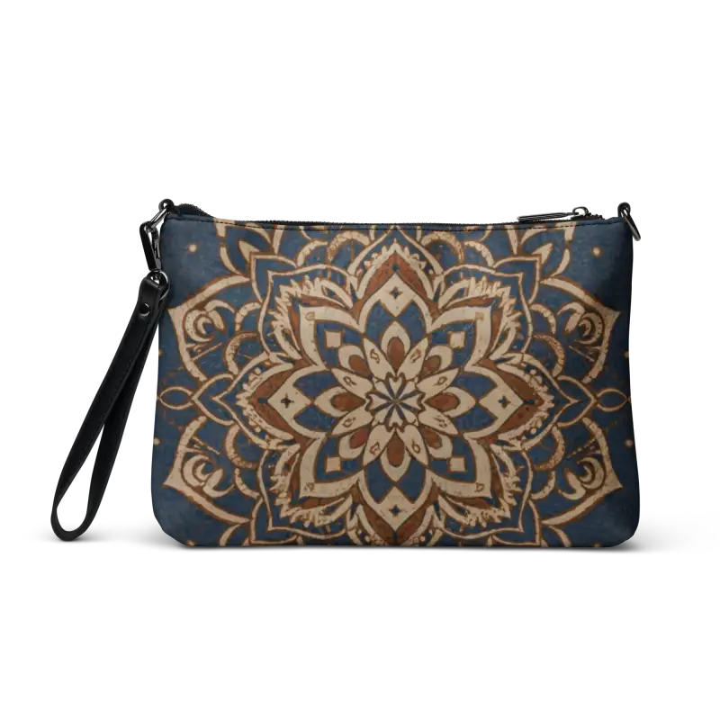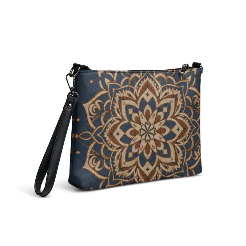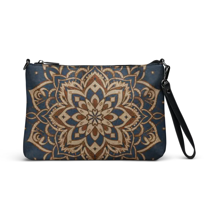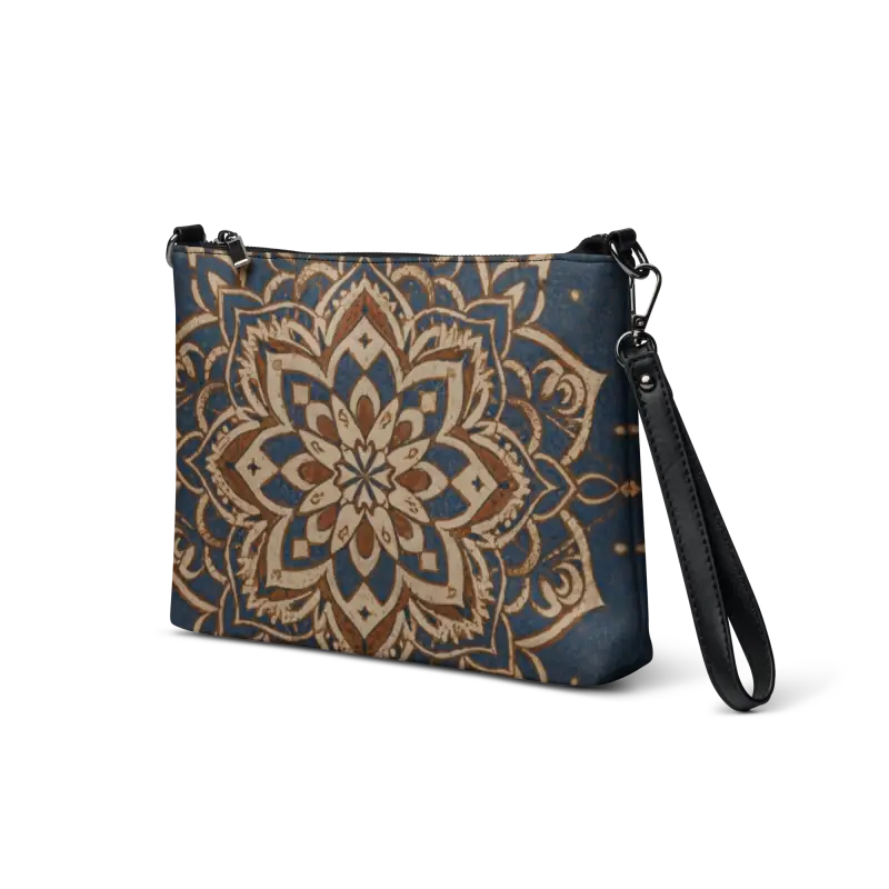 Feel the smooth premium faux leather against your fingertips as you sling this chic crossbody bag over your shoulder and step into a vibrant day in navy blue mandal pattern that speaks modern lifestyle essentials.