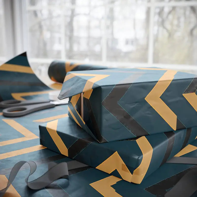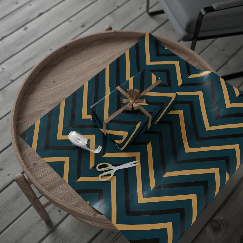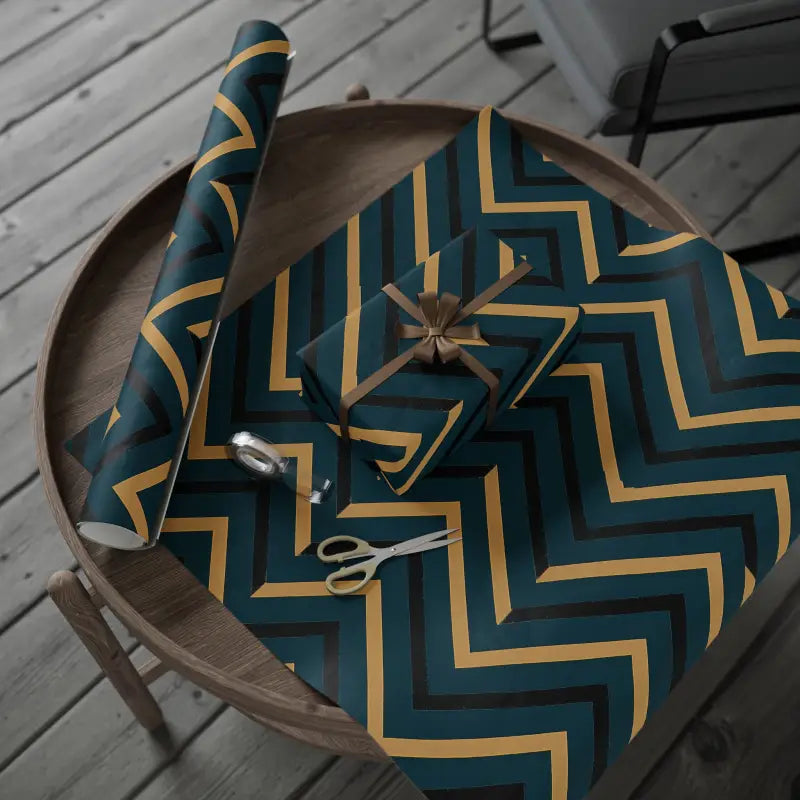 Bold turquoise chevrons meet soothing slate waves in a modern print that pops in high-definition. Under twinkling lights or in bright sunlight, these vibrant patterns elevate any gift with a chic, gallery-worthy vibe. This stylish wrapping fuses sleek design with playful energy, making your present the center of attention.