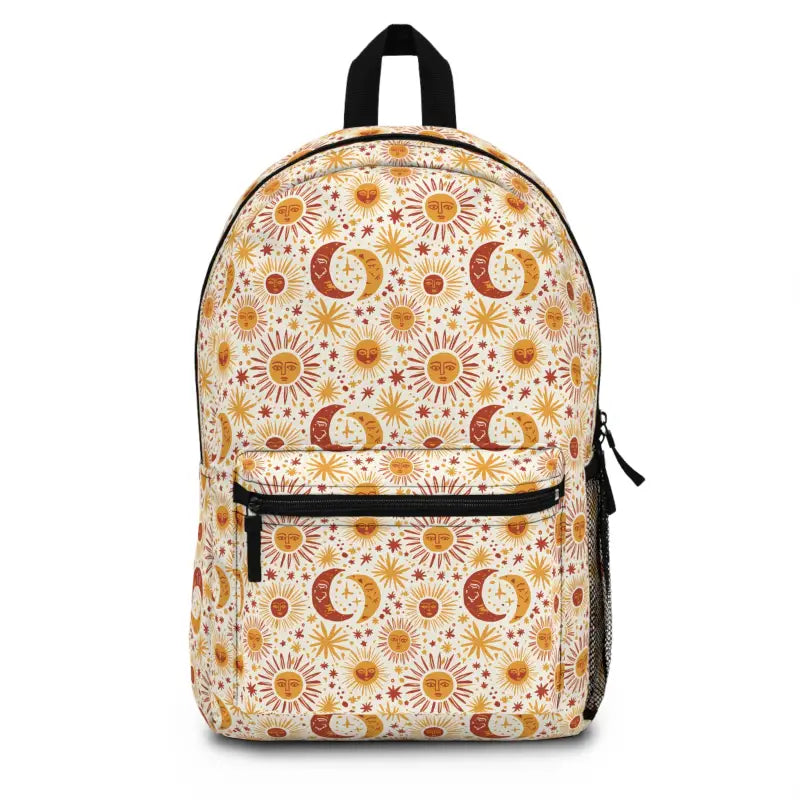 Glow through your day with this dreamy moon pattern backpack that blends boho celestial school vibes with everyday function. Soft, sun-washed tones and swirling lunar designs make it feel like carrying a piece of the night sky wherever you roam.