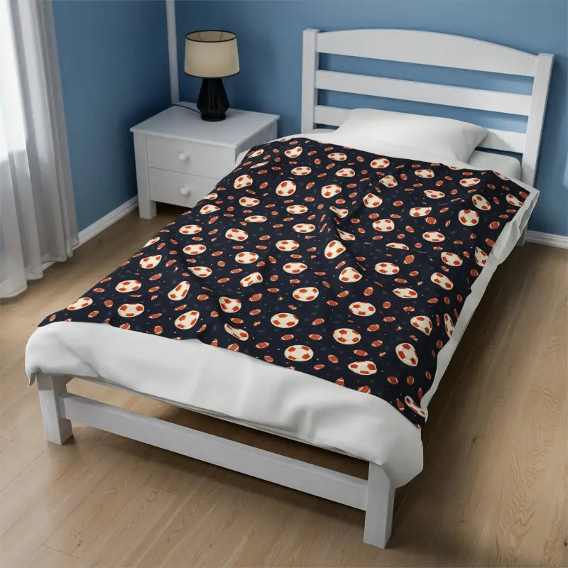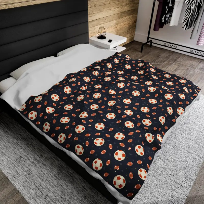 Bring this plush blanket into your home and let every moment be filled with comfort, warmth, and a touch of sporty elegance. With its combination of high-quality materials and fun, stylish design, the Super Football Velveteen Plush Blanket is more than just a way to stay warm—it's a charming emblem of your passion for the game. Add it to your cart now and experience the blend of luxury and fandom wrapped in one incredibly soft package!