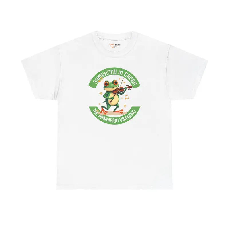 Frog Symphony Green Heavy Cotton Tee - Violin Art - DipaliZ