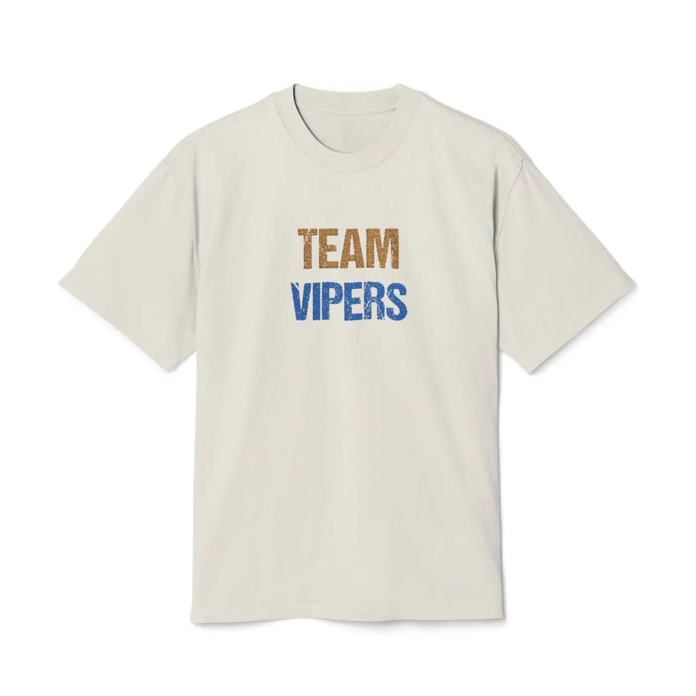 Inspired by vintage team jerseys, the heavy-duty fabric features a faded, garment-dyed finish that’s soft to the touch and packed with character. The wide ribbed collar adds a fresh retro edge while the “TEAM VIPERS” glitter graphic pops with vibrant texture. Made for those laid-back practice drills or sporty weekend hangouts, this tee keeps your look warm, fresh, and ready for every scrimmage with an eco-friendly heart.