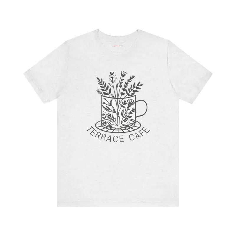 Step up your casual game with the Terra Cafe Unisex Jersey Short Sleeve Tee! Sink into the ultra-soft cotton that feels like a gentle hug, and rock a look that's equally vibrant and durable thanks to our high-quality print. Say goodbye to stretched out collars with our ribbed knit design, while our tapered shoulders mold to your body's shape for a personalized fit. Plus, dual side seams make sure your tee stays in top form wash after wash.