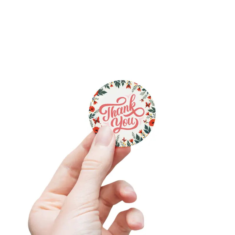 Take your packaging from drab to fab with these Durable Round Sticker Label Rolls featuring an enchanting Floral Thank You Design! A true game-changer for businesses or anyone who wants to add a dash of elegance to their packages, gifts, or event favors. These round stickers aren't just beautiful; they're rugged enough to withstand life's toughest conditions while staying fabulously vibrant. Each sticker is crafted from premium BOPP material, setting a high standard for durability and strength. Whether they've journeyed through rain, shine, scratches, or heat, these stickers are your trusty sidekicks.