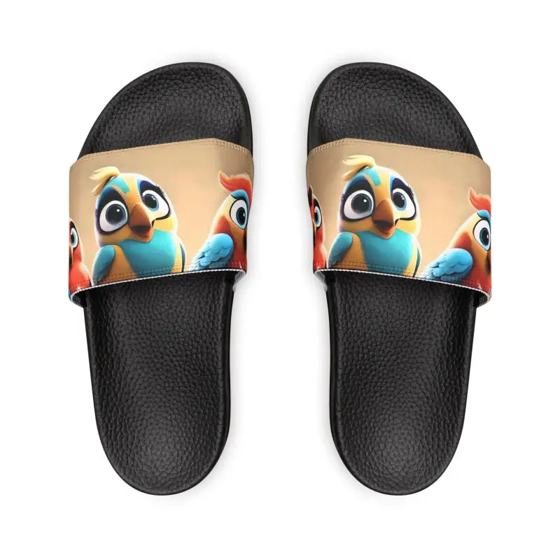 Imagine your young adventurer running through the sand or strolling along the boardwalk, confident in shoes that provide both comfort and a splash of personality. The Three Cute Birds youth PU slide sandals deliver a standout look with vibrant colors and an engaging design that sparks joy and imagination.