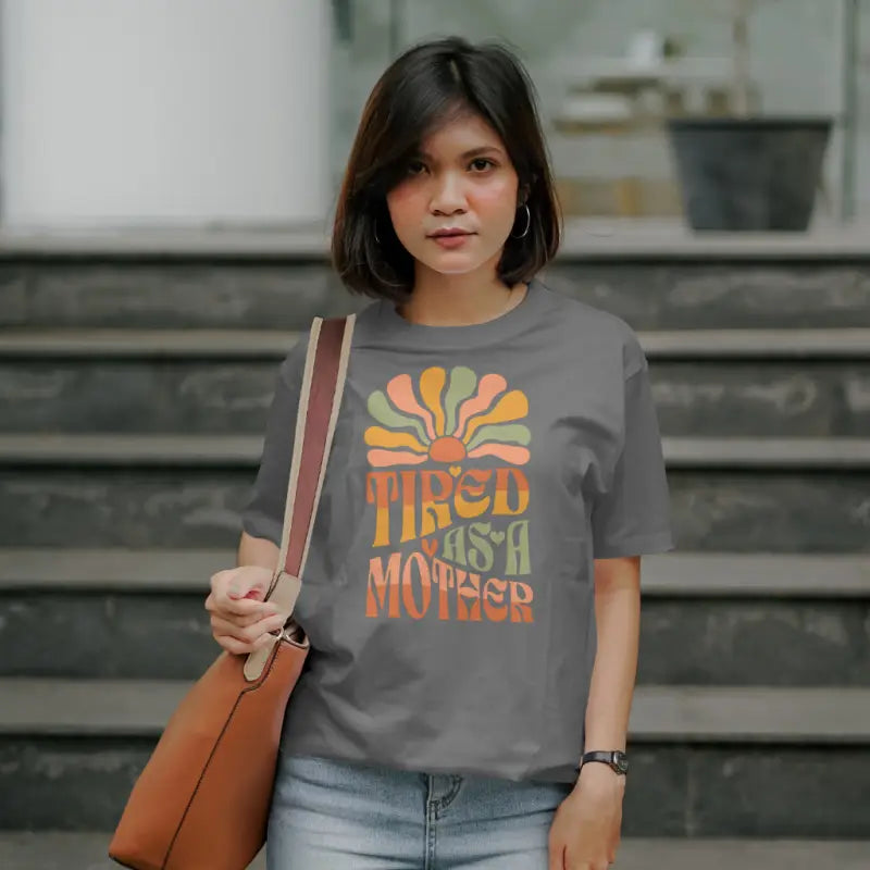 Print: Features bold, cool lettering with the iconic Tired as a Mother design that makes a fun statement for every mom.