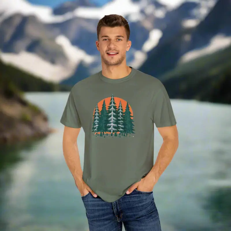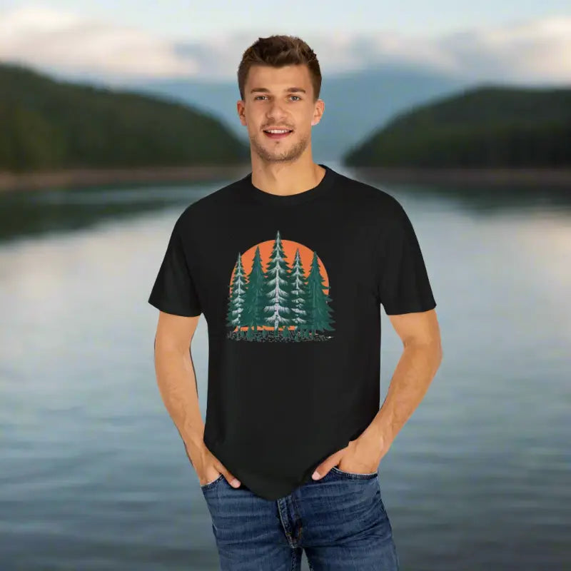 Picture yourself wearing this tee on a sun-drenched hike or cozying up around a flickering campfire. It's not just about looking good; it's about feeling great, too. Thanks to its durable materials, this forest t-shirt holds up after countless washes, maintaining both color and shape, so it stays as fresh as your passion for adventure.