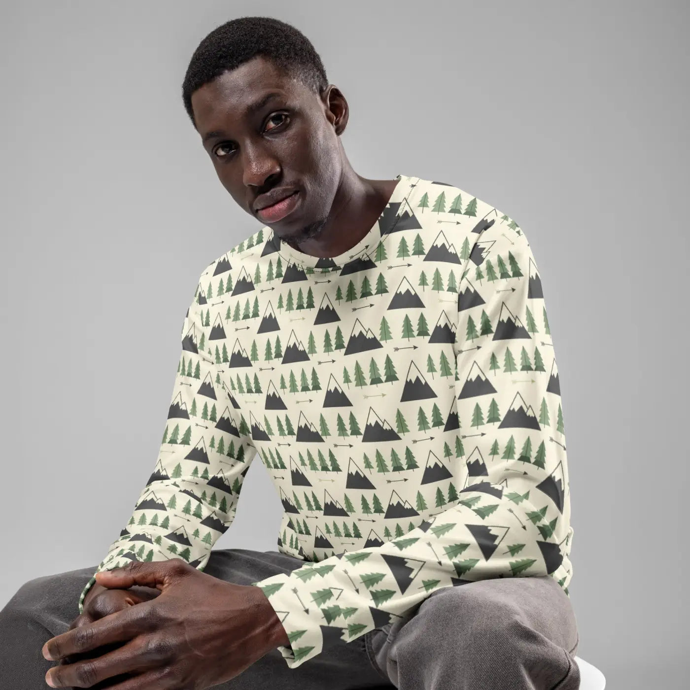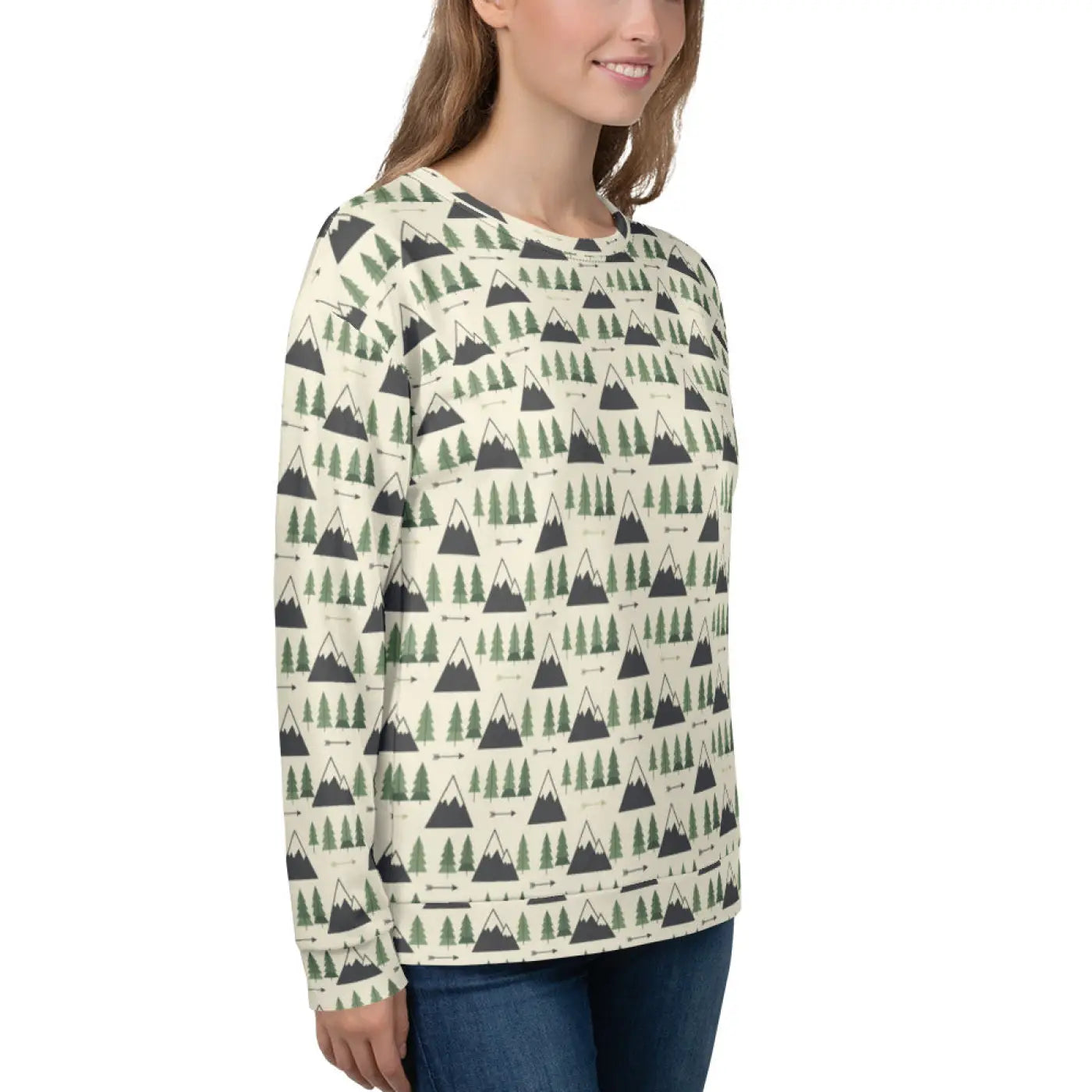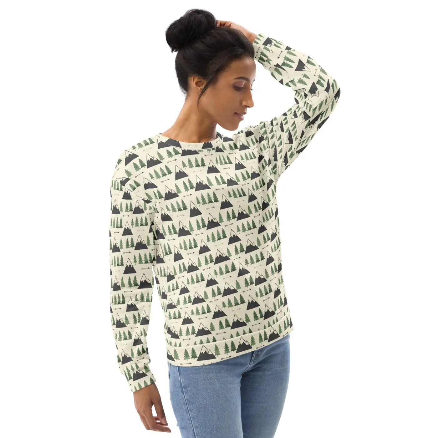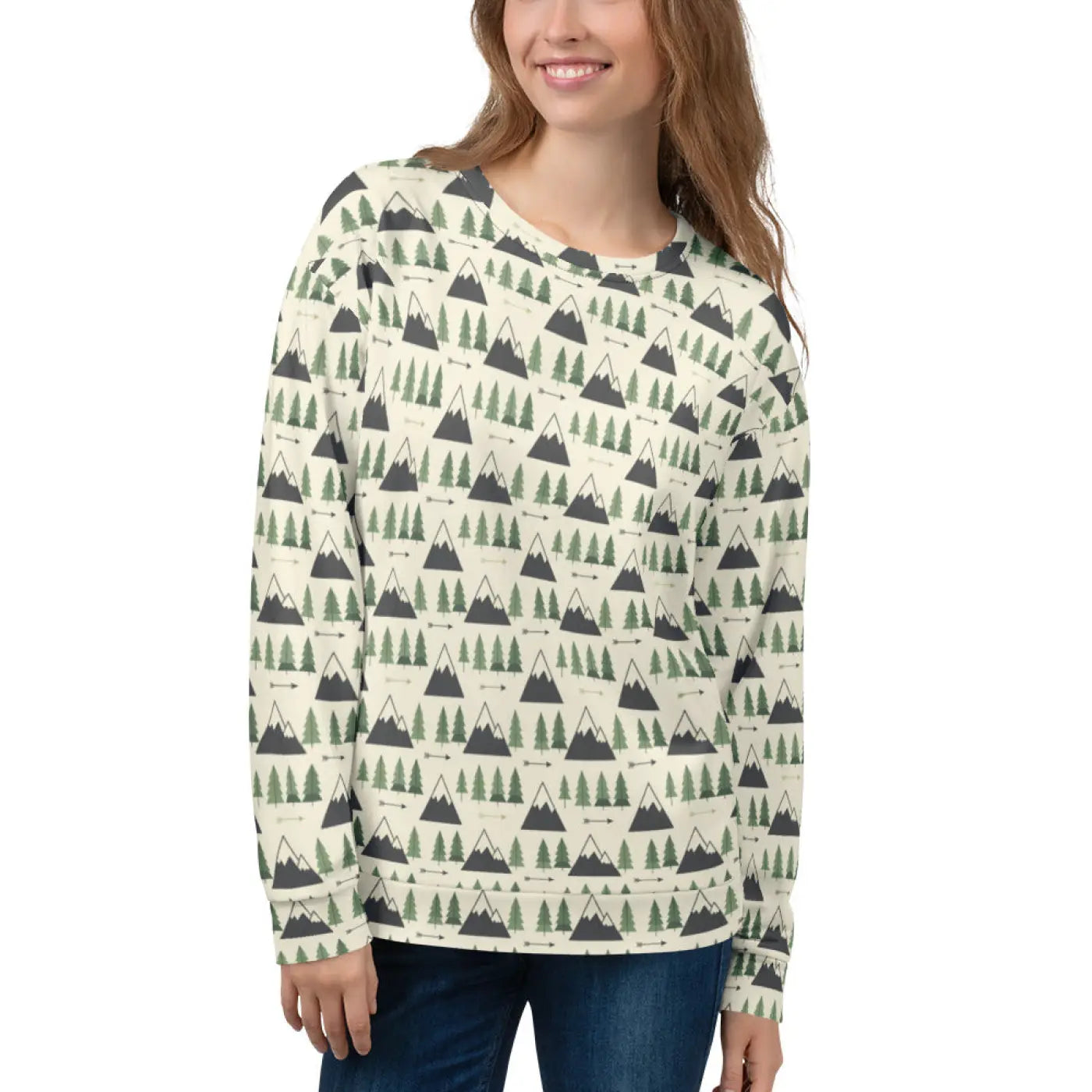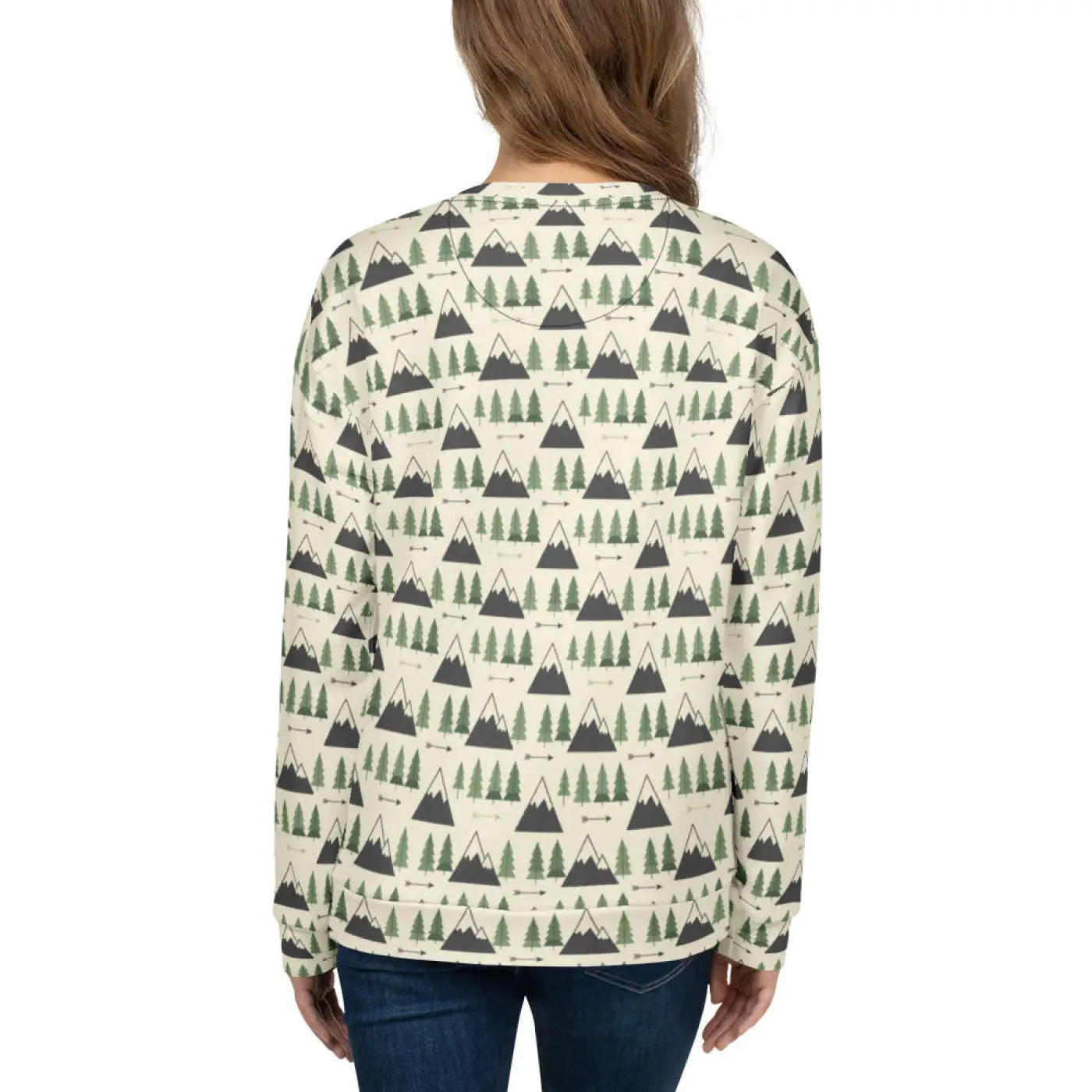 Inspired by the serene beauty of mountain trees, this sweatshirt captures the fresh, crisp feeling of the great outdoors. Each piece features a vibrant, all-over print that's precision-cut and hand-sewn to bring the detailed design to life. Made from durable fabric that feels soft and cozy against your skin, it's an ideal choice for anyone seeking eco-friendly gifts that combine style and sustainability.